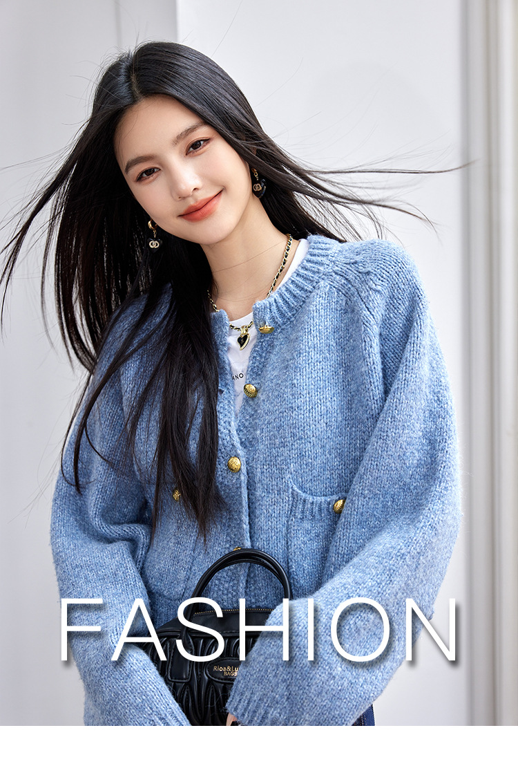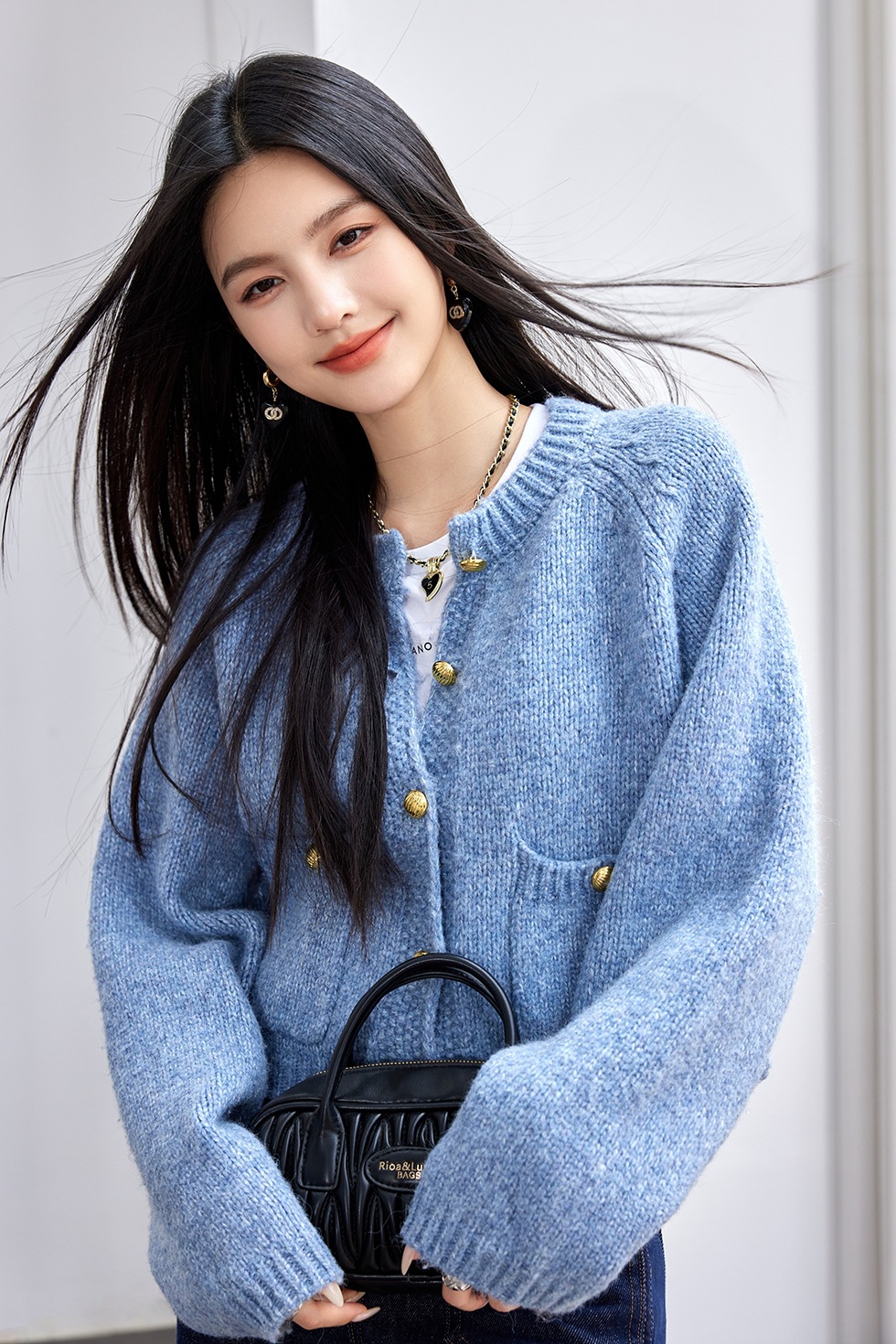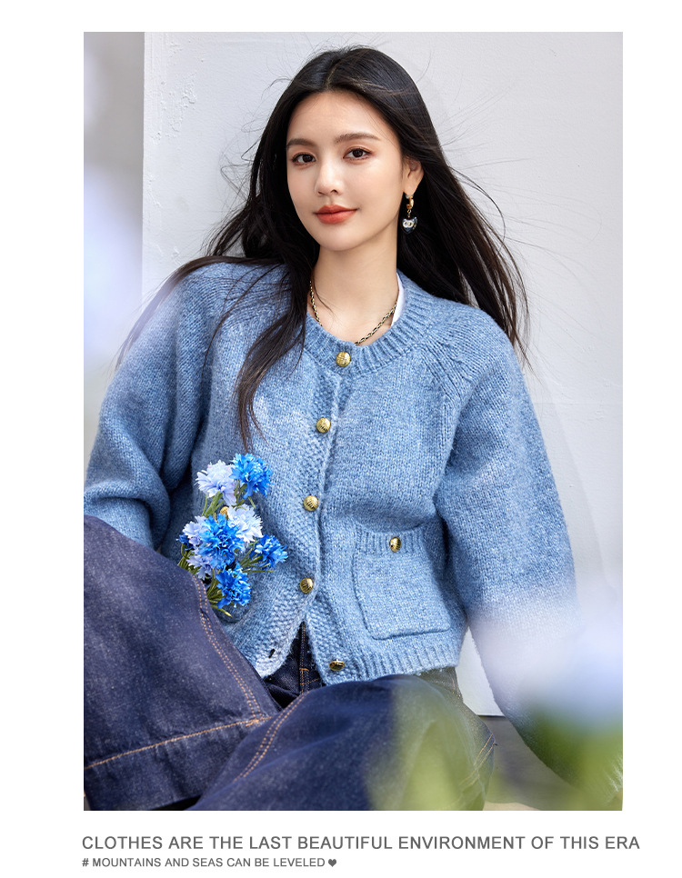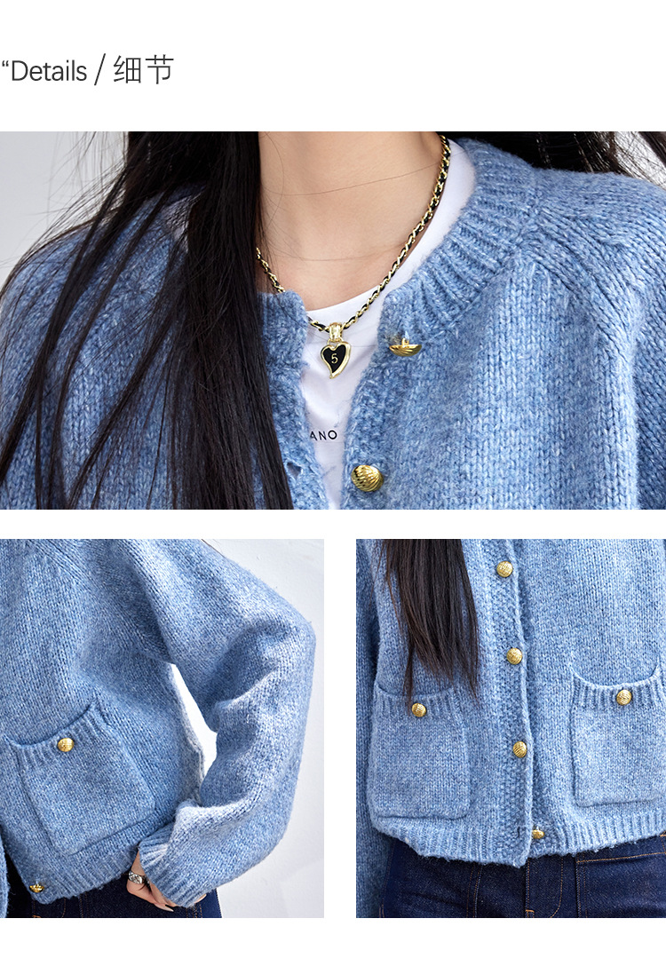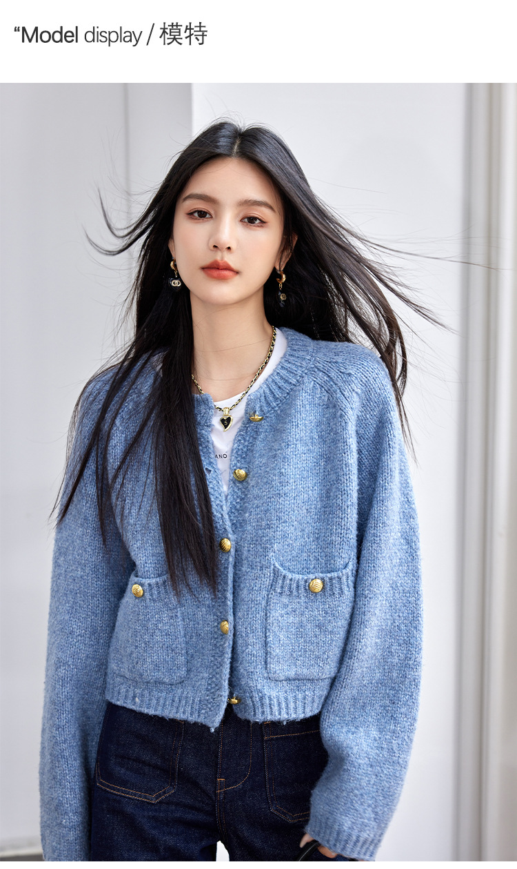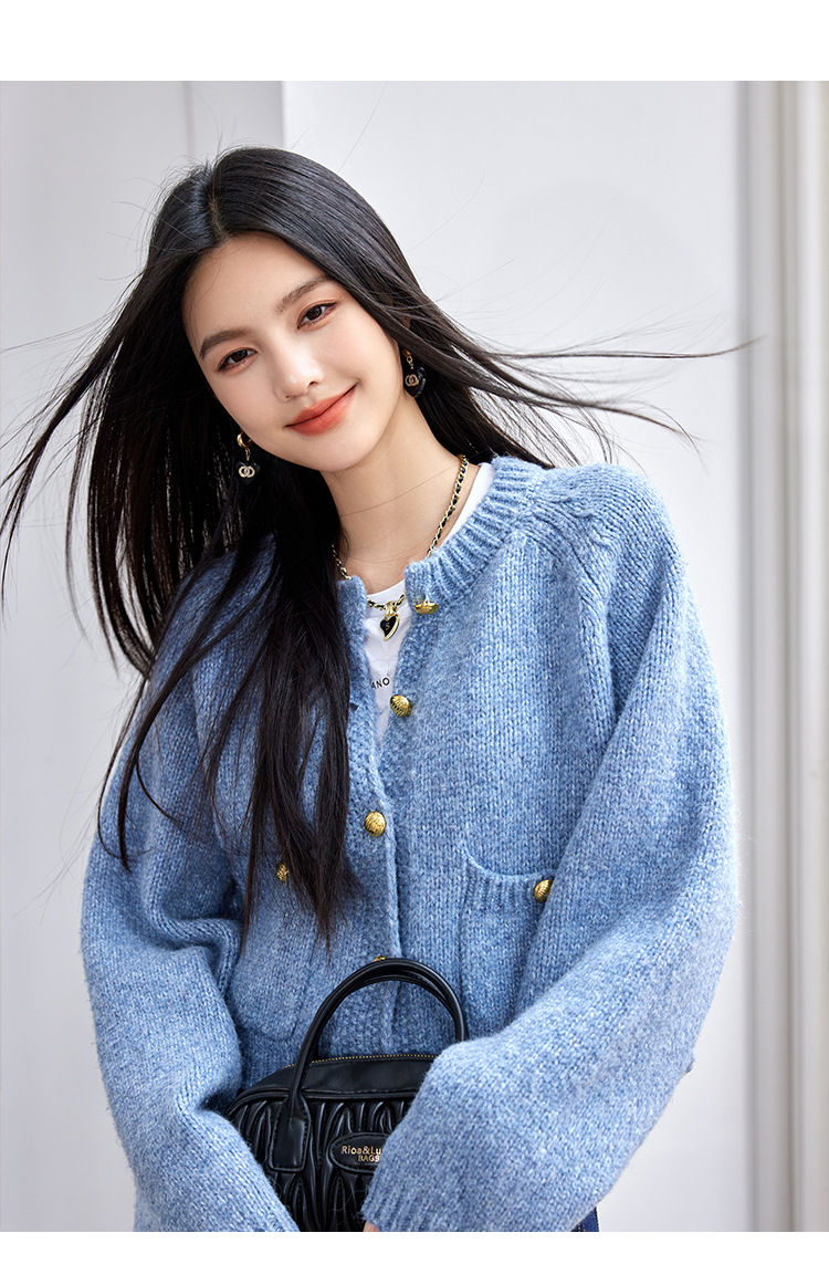 2024 겨울 새로운 한국 스타일 샤넬 스타일 두꺼운 따뜻한 작은 골드 버튼 디자인 포켓 카디건 짧은 스웨터