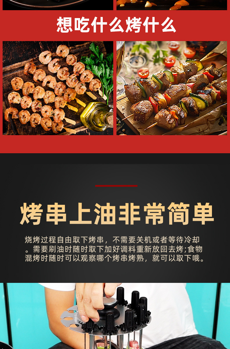 • 꼬치 기계 타이머 온도 조절 모델 12개 꼬치 플러그 12개