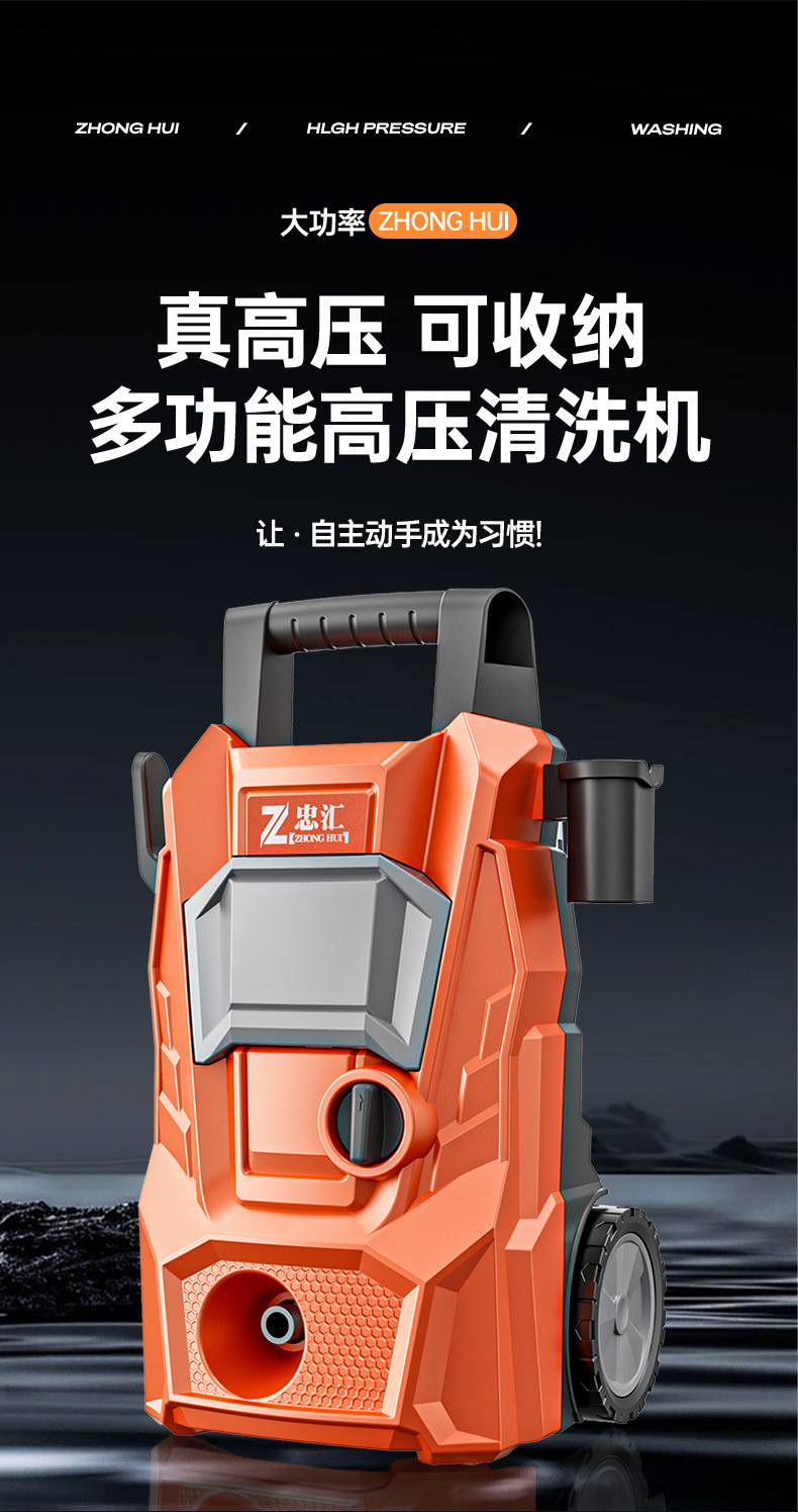 새로운 고압 세차 도구, 다기능 고출력 AC 전기 세차기, 가정용 휴대용 세차 물총