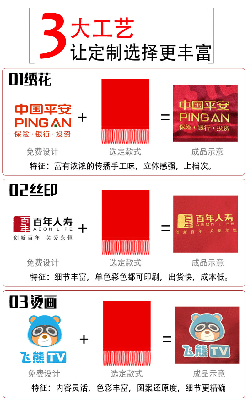 연례 회의 빨간 스카프 자수 중국 붉은 선물 파티 빨간 스카프 도매 오프닝 빨간 스카프 로고