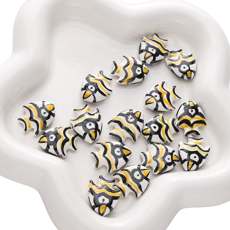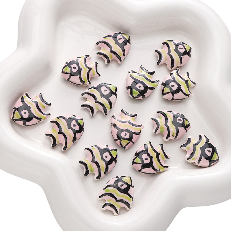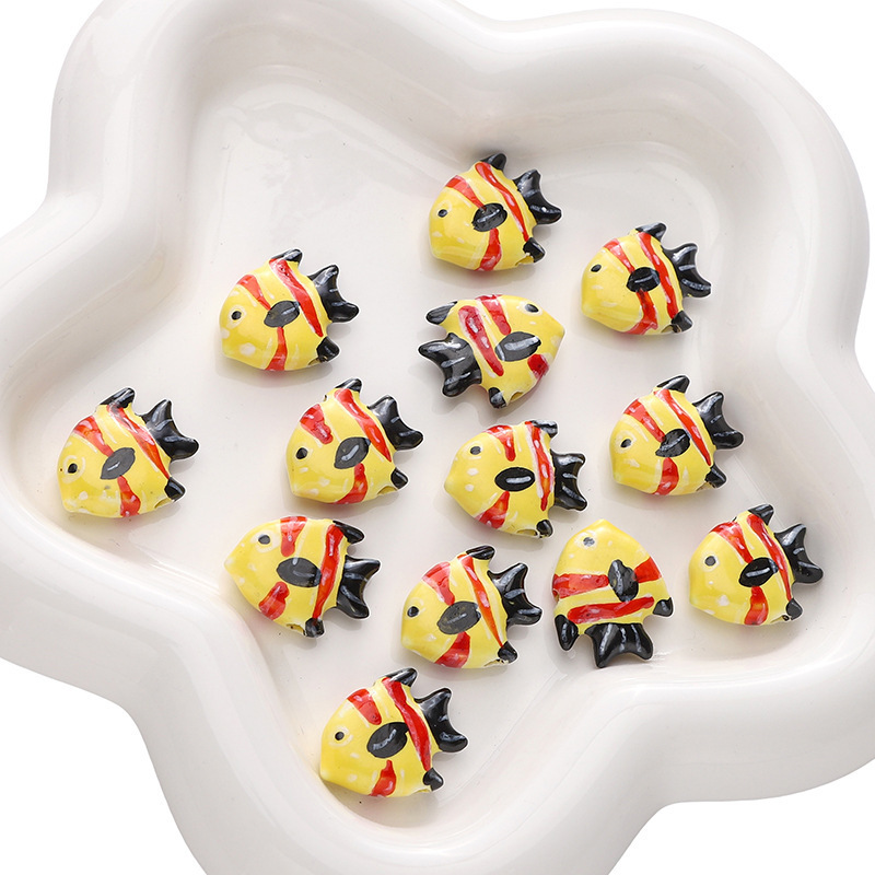 귀여운 세라믹 손으로 그린 구슬 열대 생선 구슬 느슨한 구슬 DIY 보석 액세서리 수제 휴대 전화 체인 소재