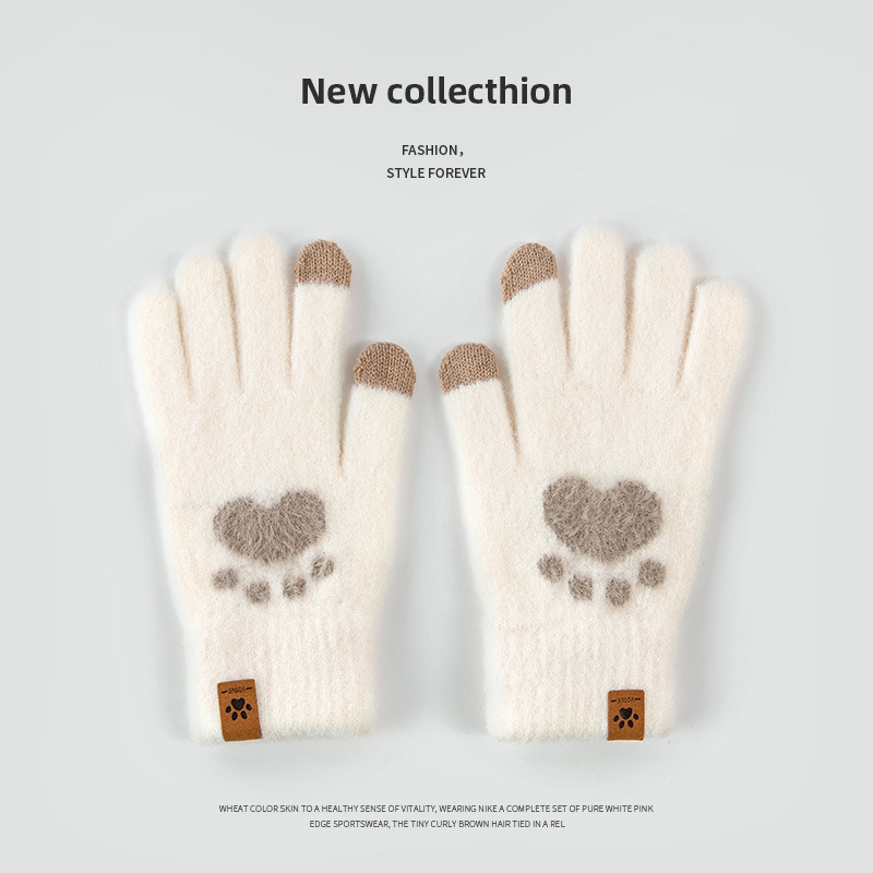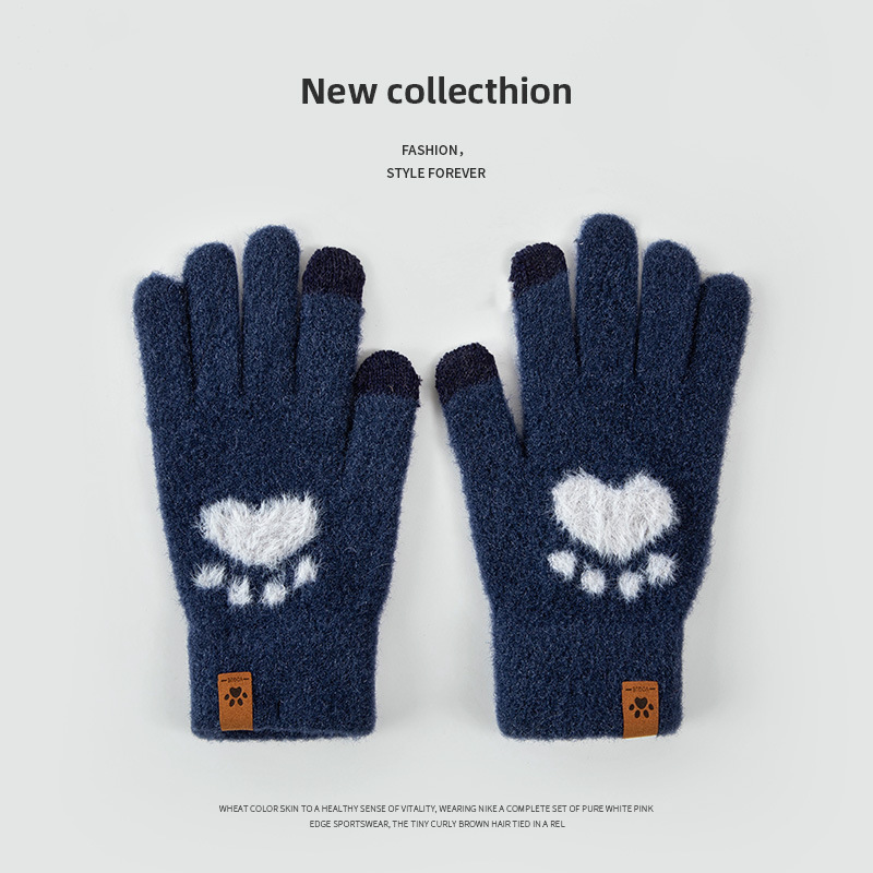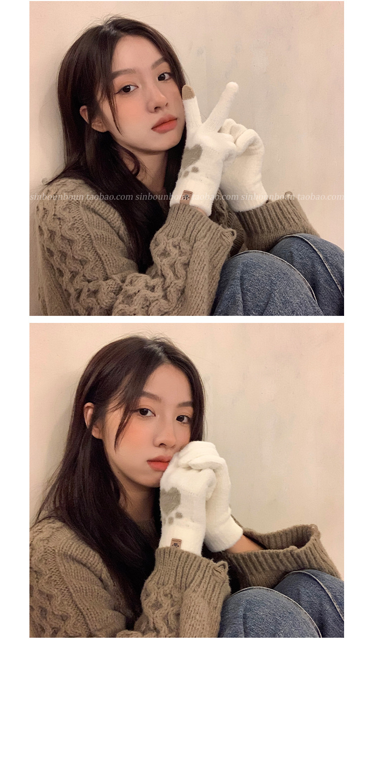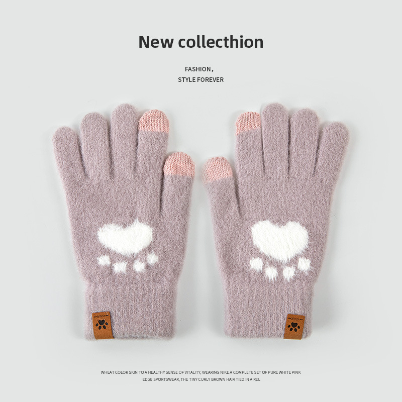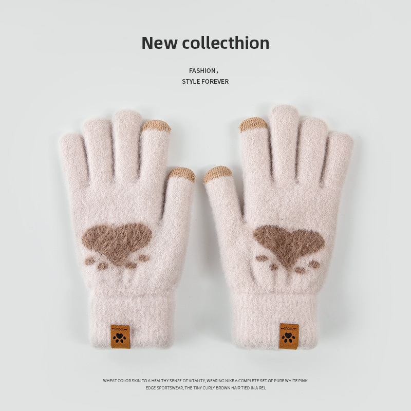 터치 스크린 두꺼운 푹신한 장갑 겨울 학생 손 따뜻한 안티 냉동 핸드 가드 핑거 니트 귀여운 감기 장갑 여성용