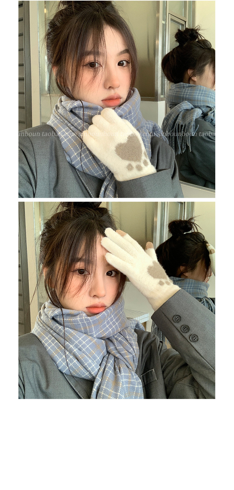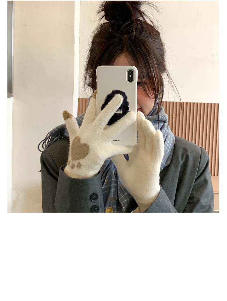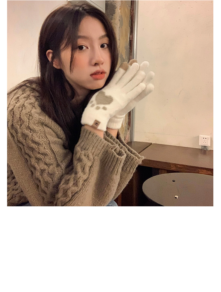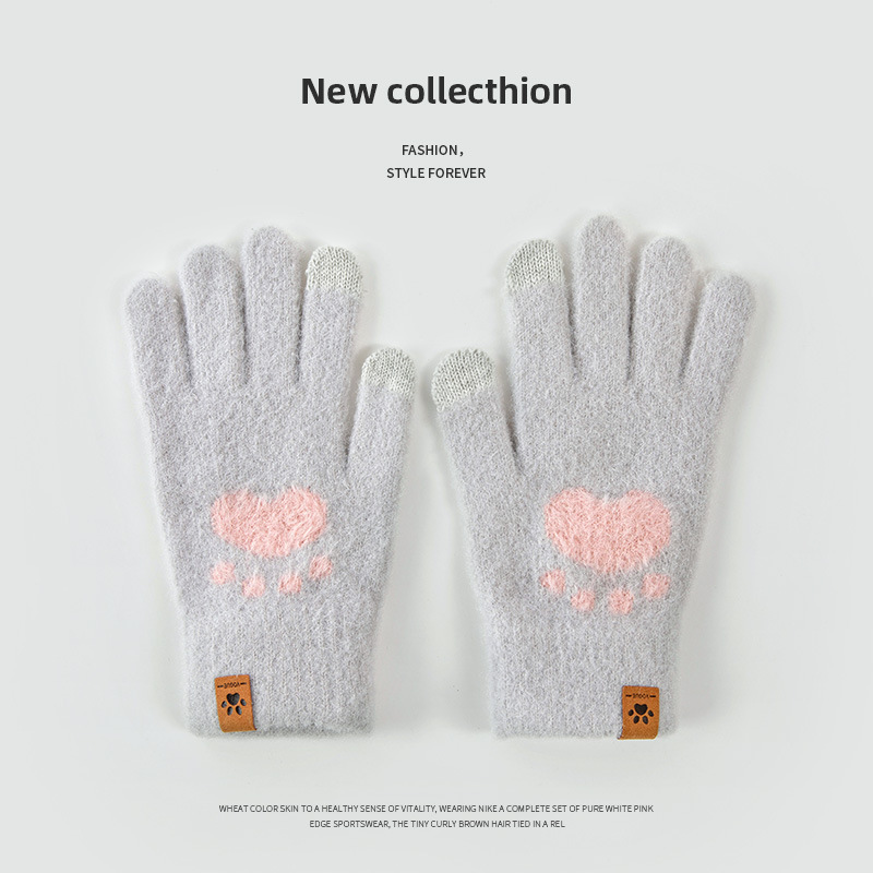 터치 스크린 두꺼운 푹신한 장갑 겨울 학생 손 따뜻한 안티 냉동 핸드 가드 핑거 니트 귀여운 감기 장갑 여성용