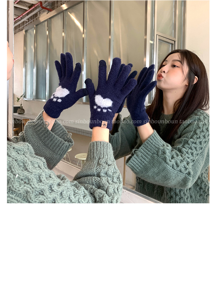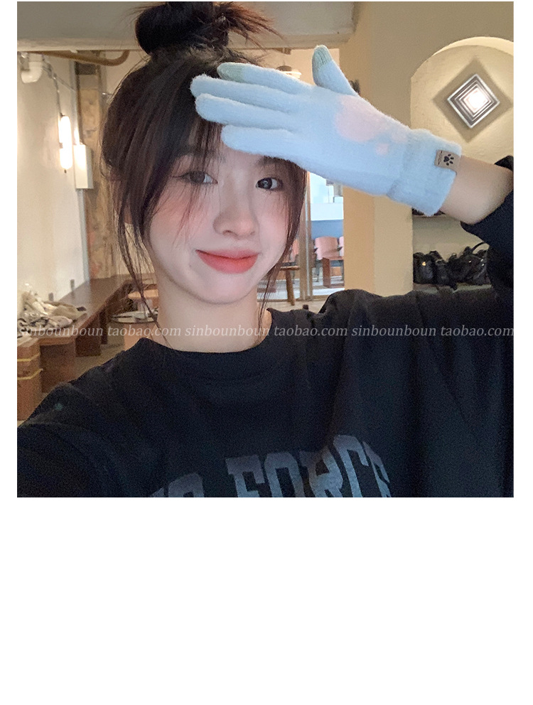 터치 스크린 두꺼운 푹신한 장갑 겨울 학생 손 따뜻한 안티 냉동 핸드 가드 핑거 니트 귀여운 감기 장갑 여성용스토어 가기