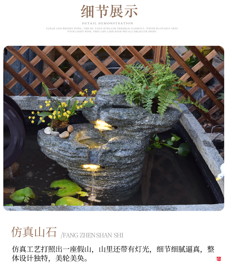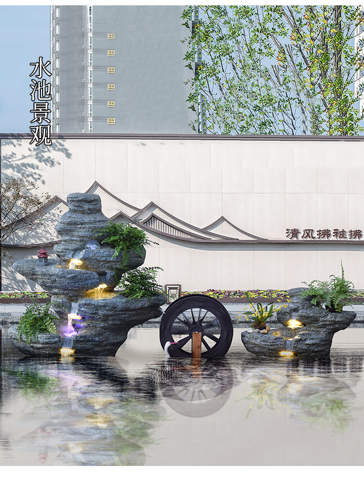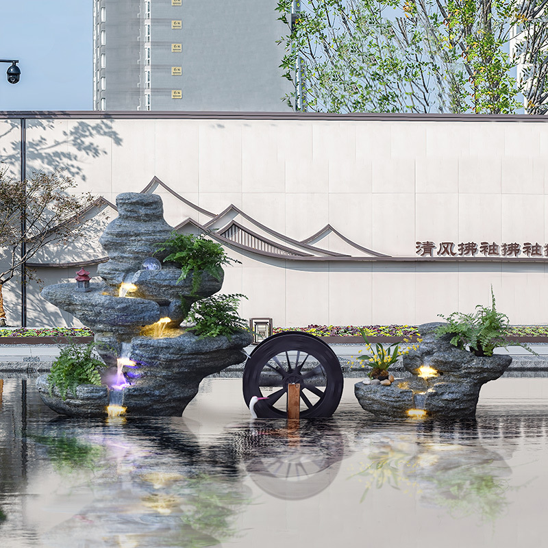 대형 바위 물 분수 폭포 풍경 호텔 로비 야외 빌라 안뜰 정원 실내 물고기 연못 장식품스토어 가기