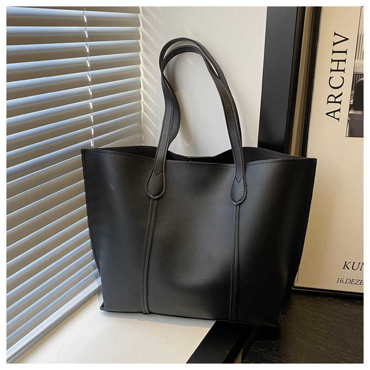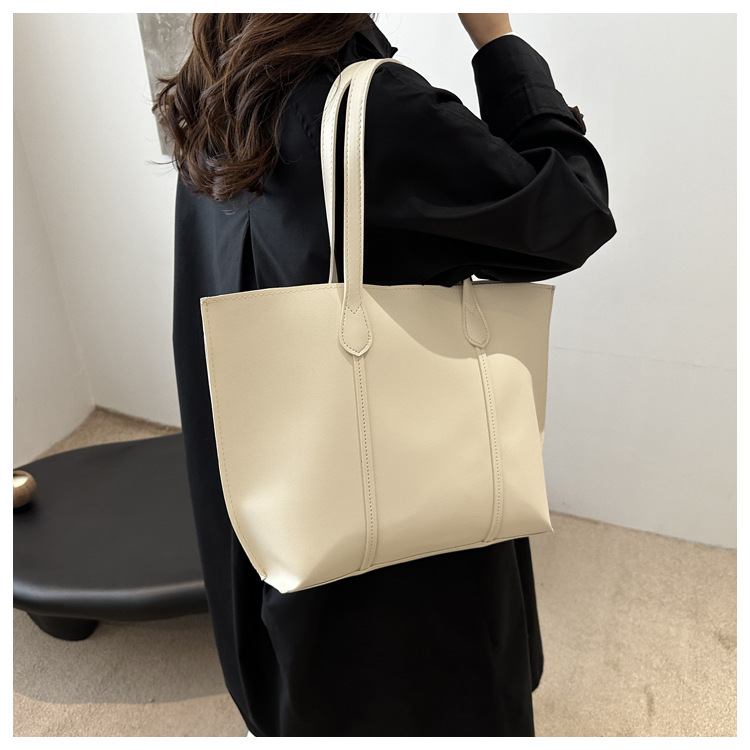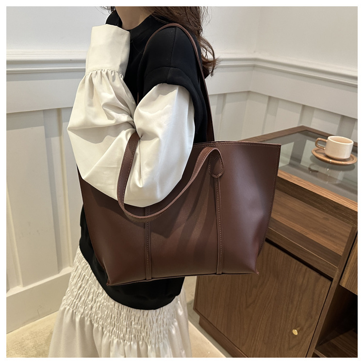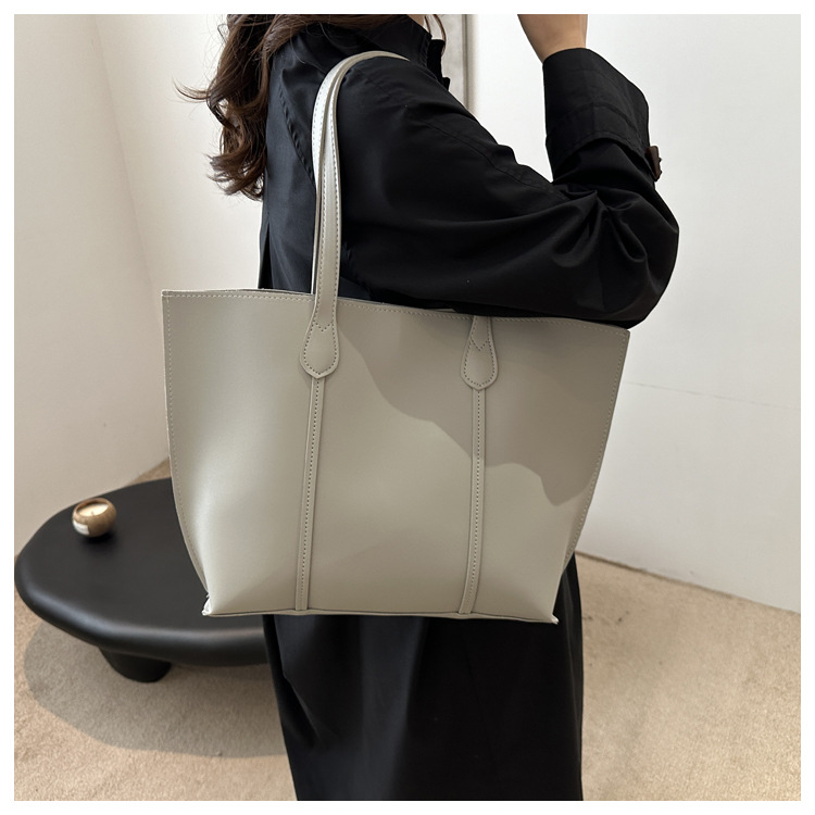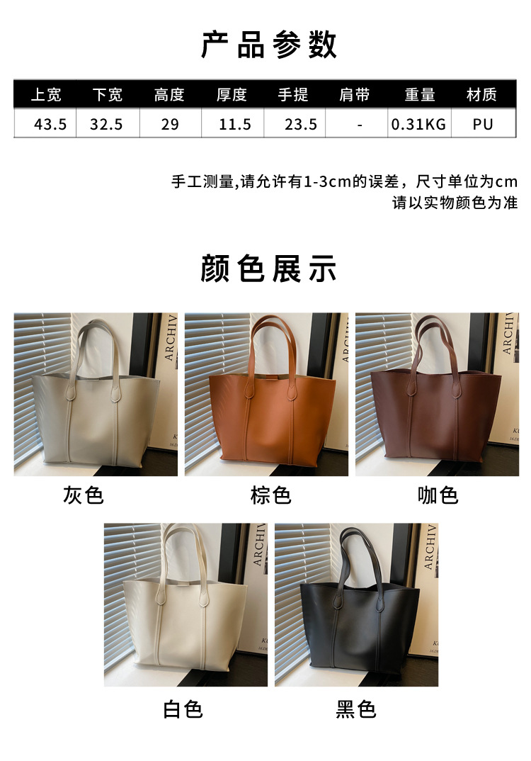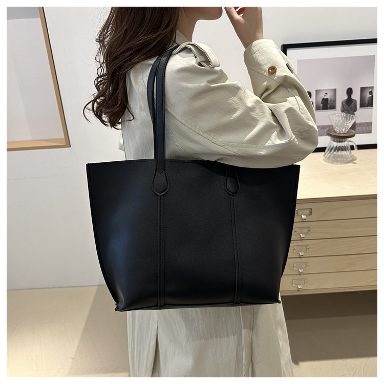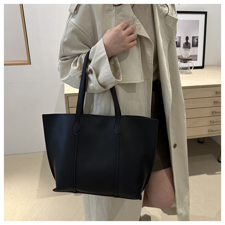 한국 스타일 대용량 솔리드 컬러 가방 여성의 2024 새로운 패션 레트로 통근 토트 백 간단한 솔리드 컬러 숄더 백