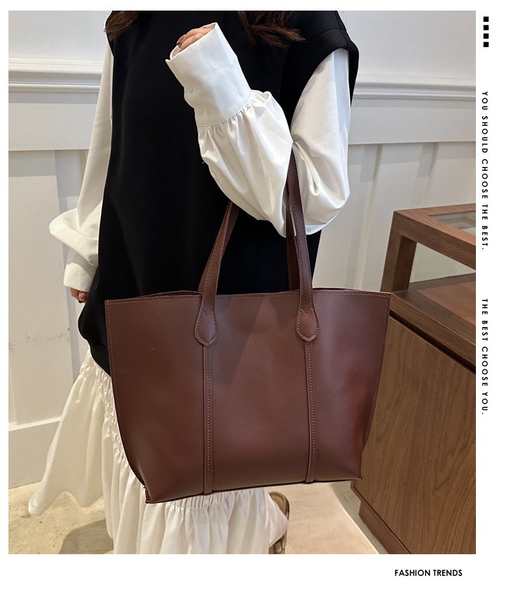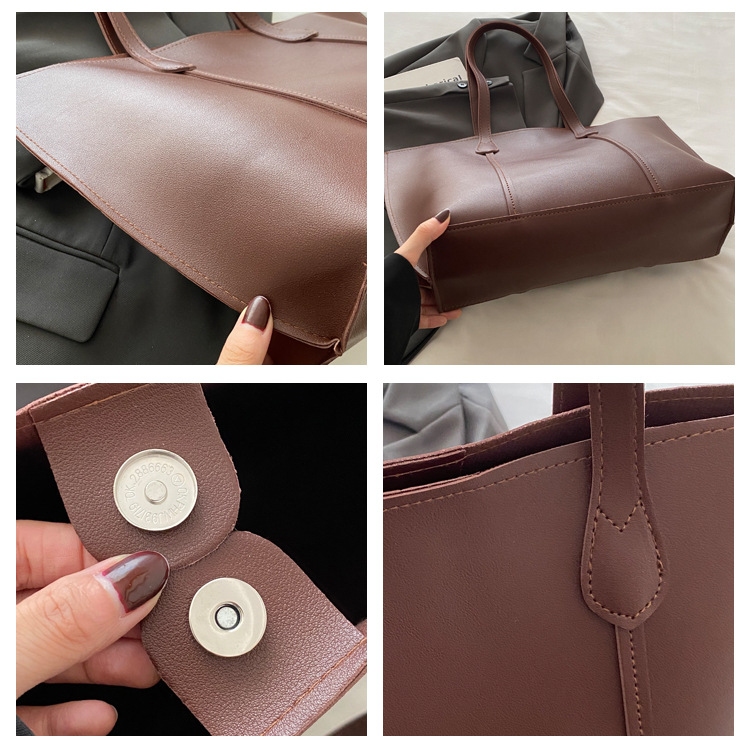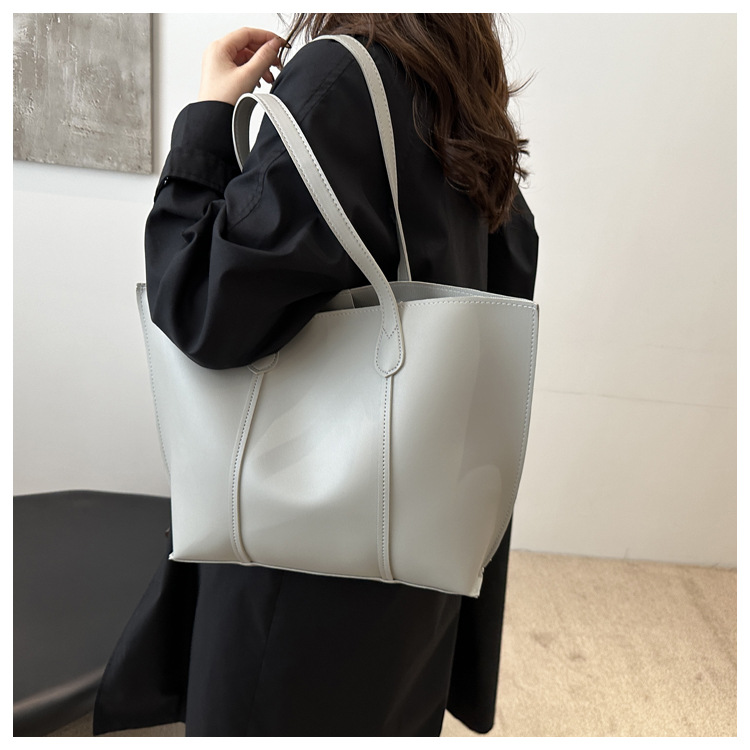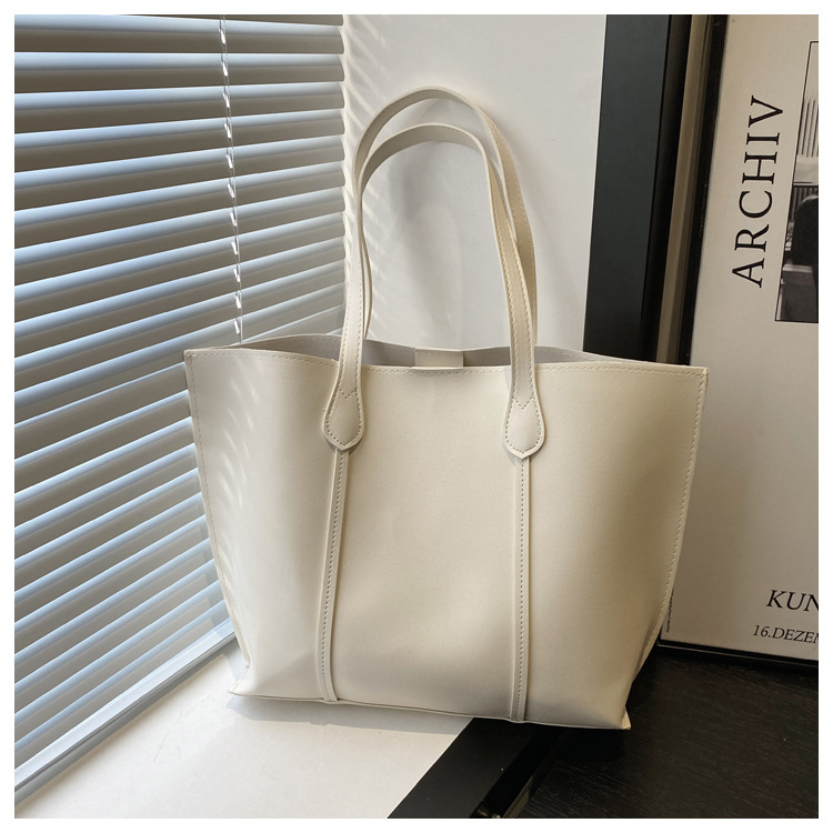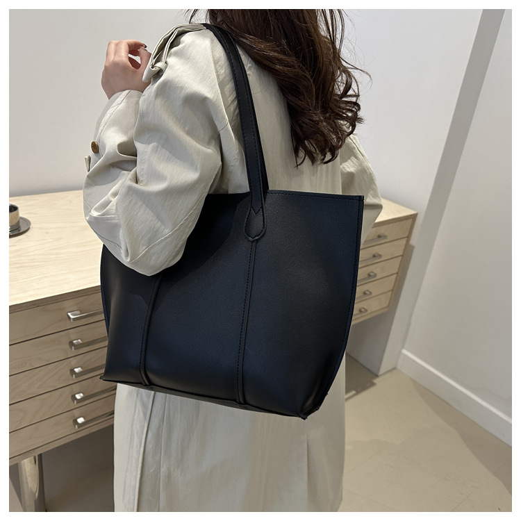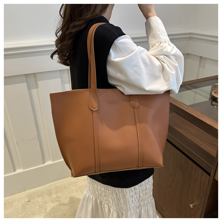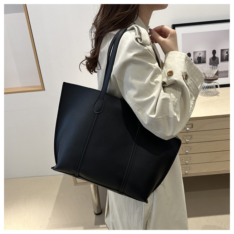 한국 스타일 대용량 솔리드 컬러 가방 여성의 2024 새로운 패션 레트로 통근 토트 백 간단한 솔리드 컬러 숄더 백