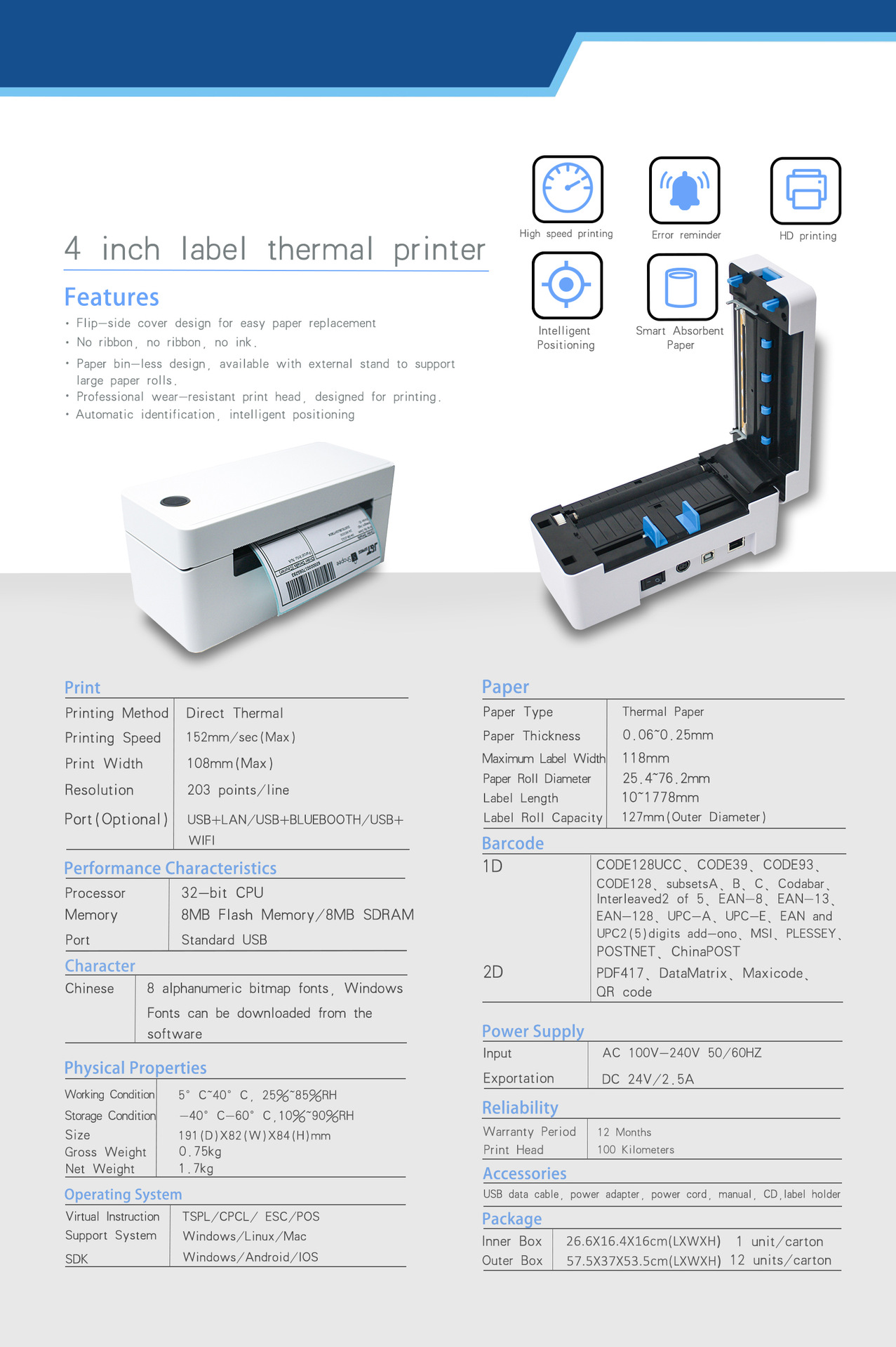 4英寸标签打印机 x1