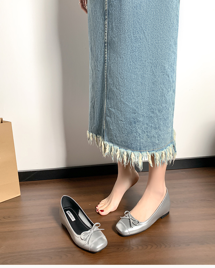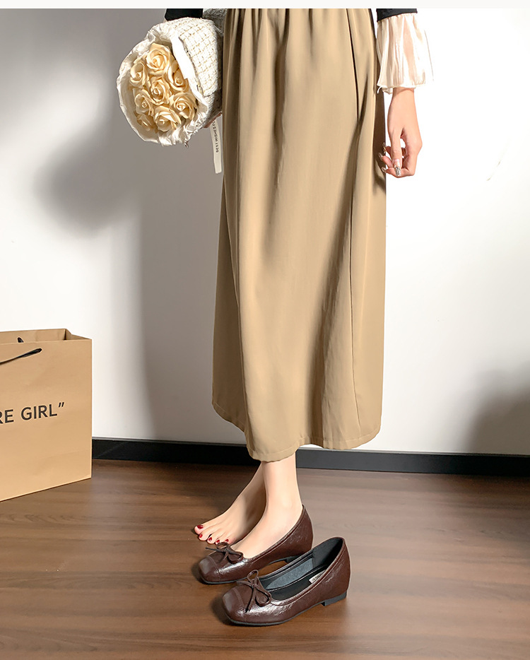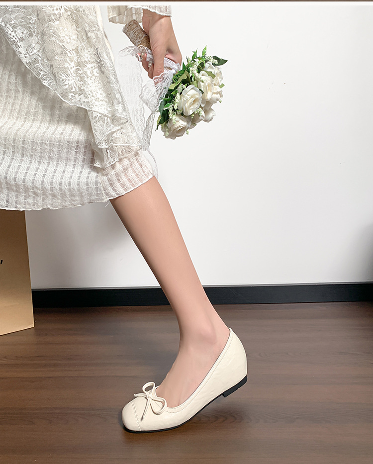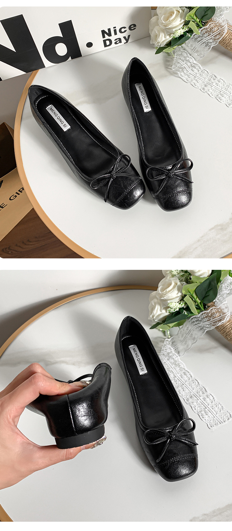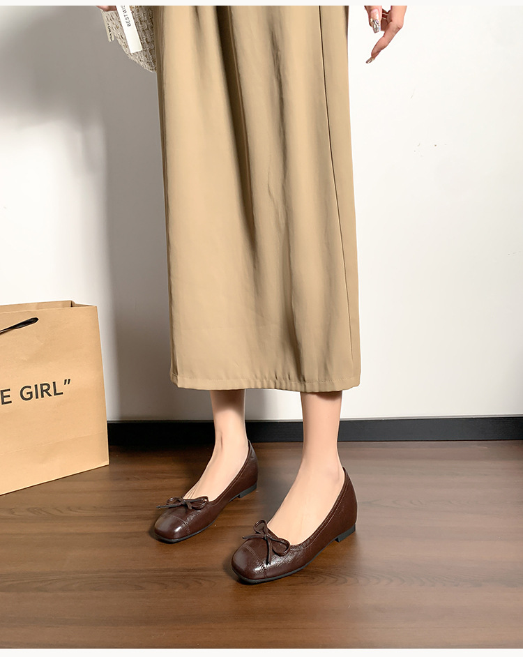 정품 가죽 프랑스 스타일 복고풍 플랫 발레 신발 여성 스퀘어 발가락 펌프 강화 활 신발 스몰 사이즈 밀크 신발스토어 가기