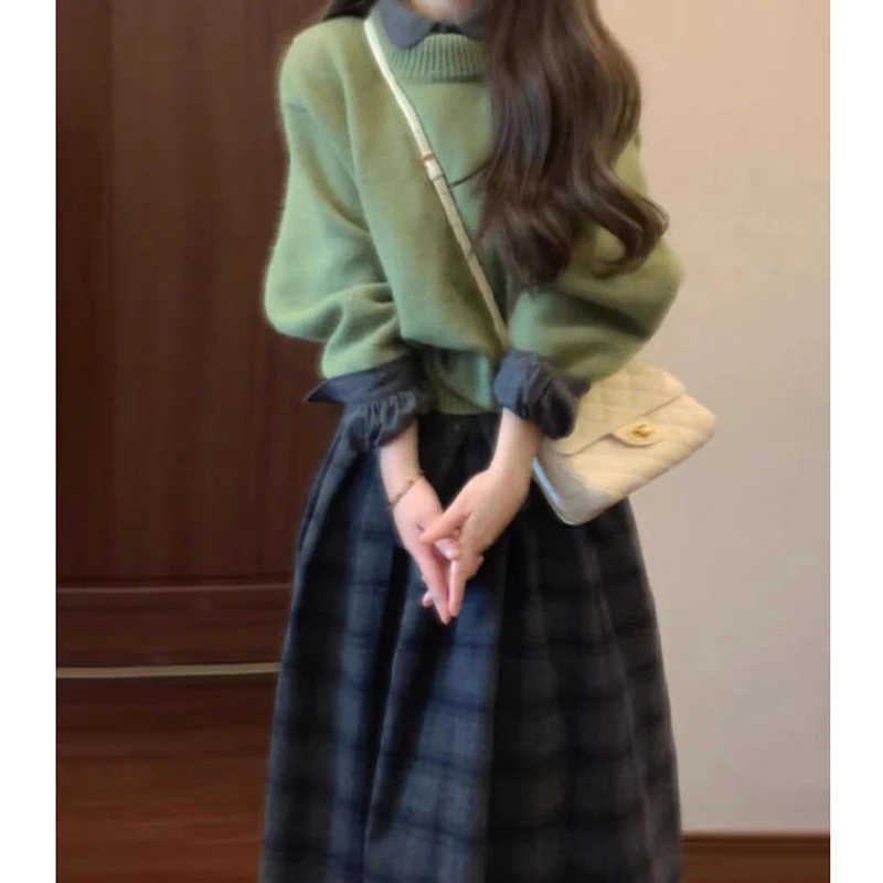 부드럽고 부드러운 왁스웨어 여성용 가을 및 겨울 배 모양의 바디 슬리밍 연령 감소 니트 스웨터 하프 길이 원피스 3 피스 세트스토어 가기