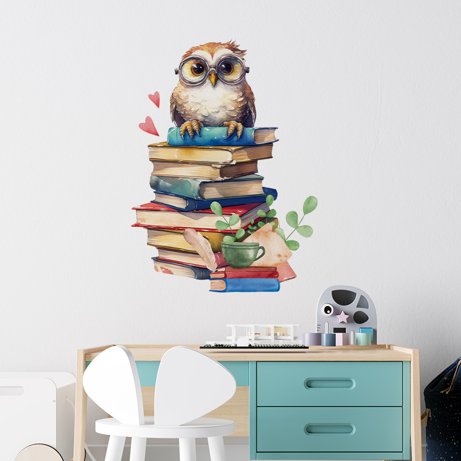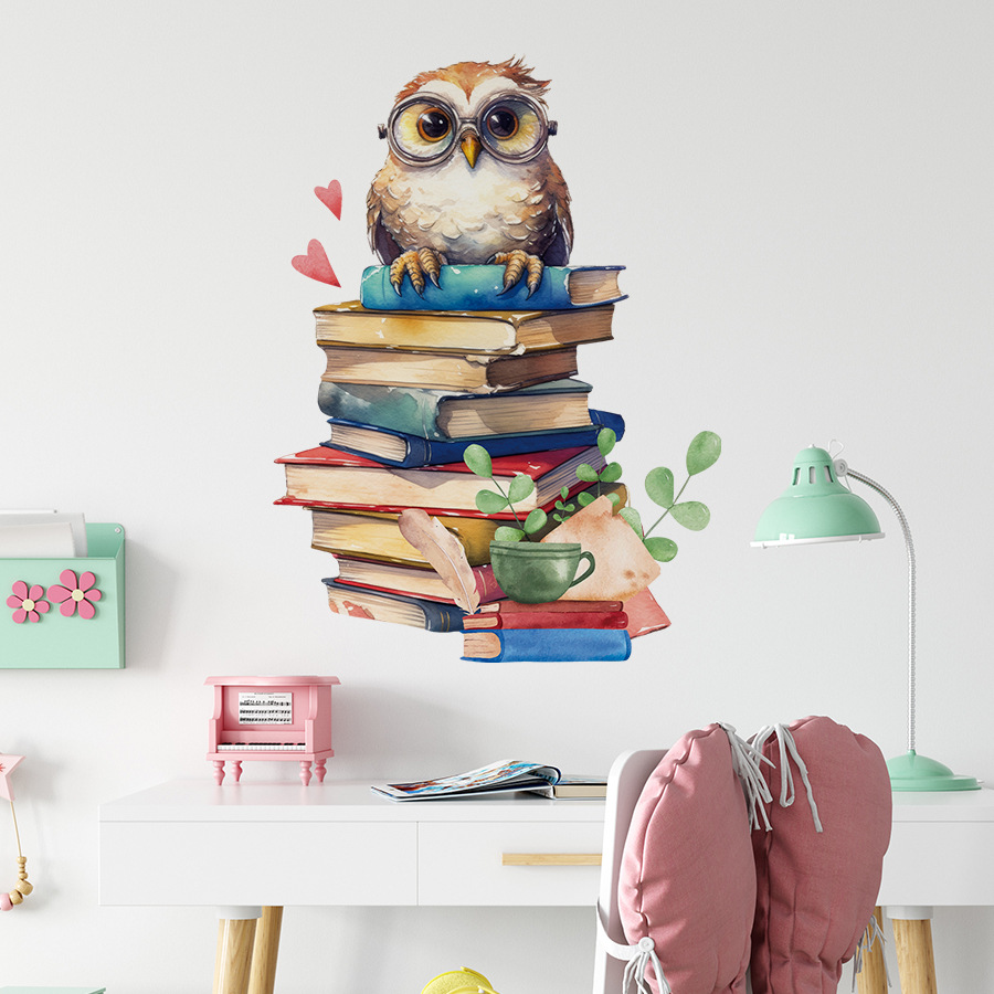 만화 컬러 erudite 올빼미 자체 접착 벽 스티커 침실 연구 교실 기숙사 장식 스티커 BR66438