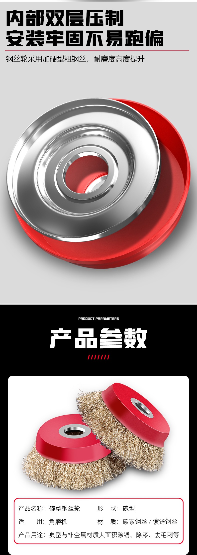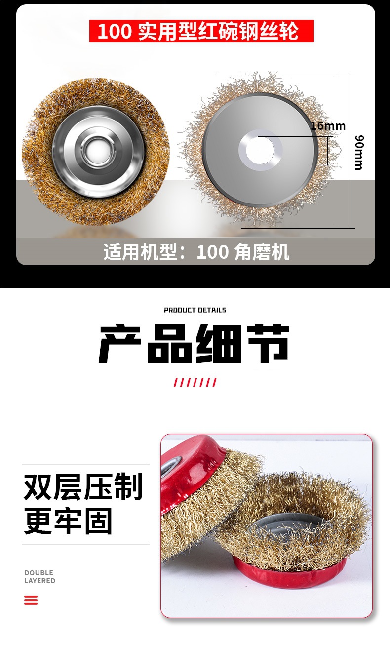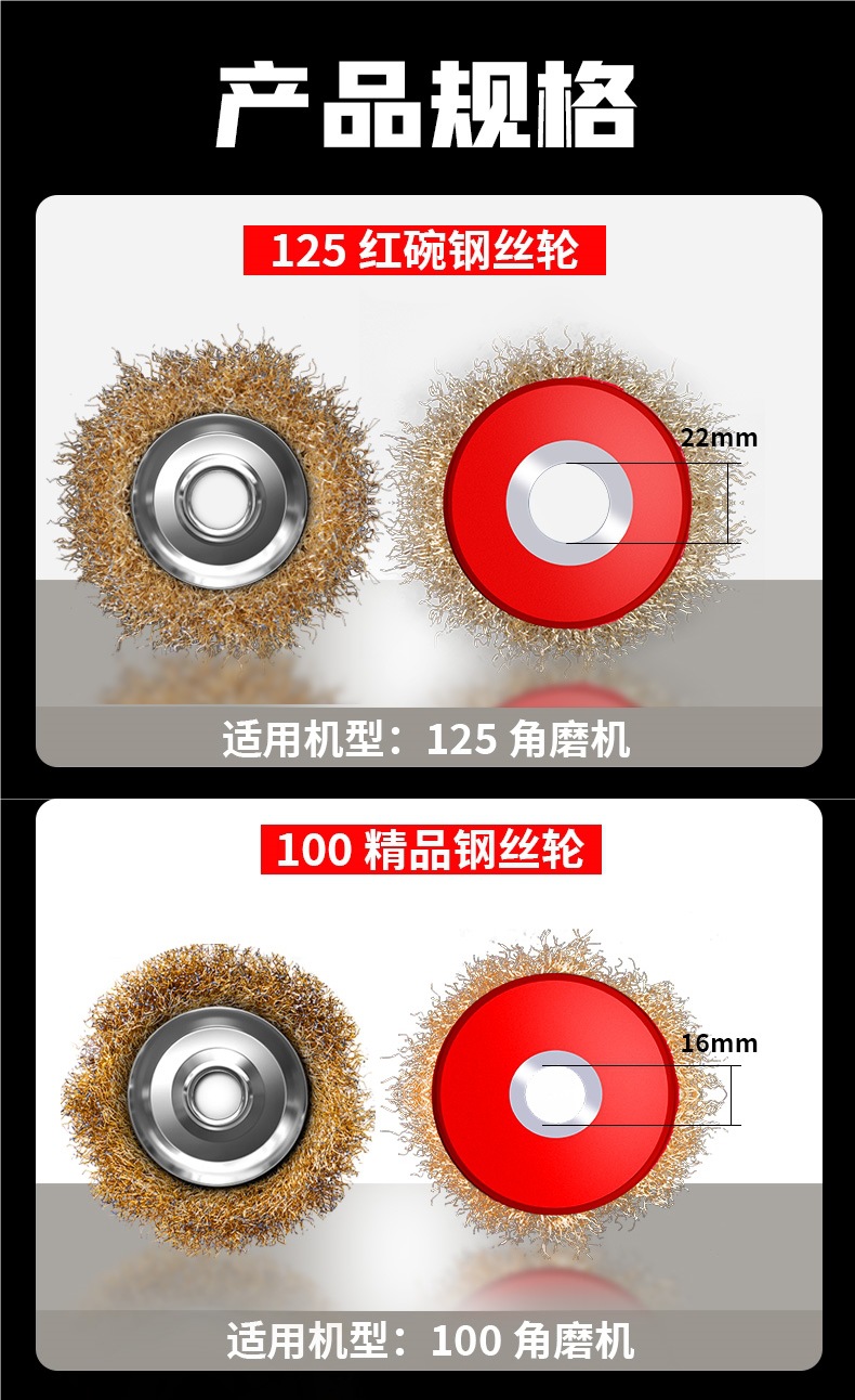 각도 그라인더 그릇 유형 와이어 브러시 와이어 휠 연삭 금속 녹 제거 연마 100 유형 두꺼운 연마 기계 연삭 휠스토어 가기