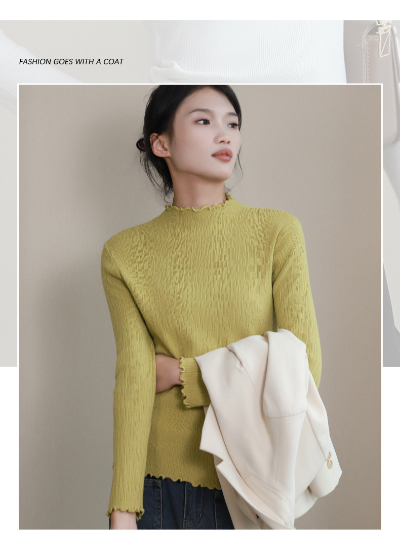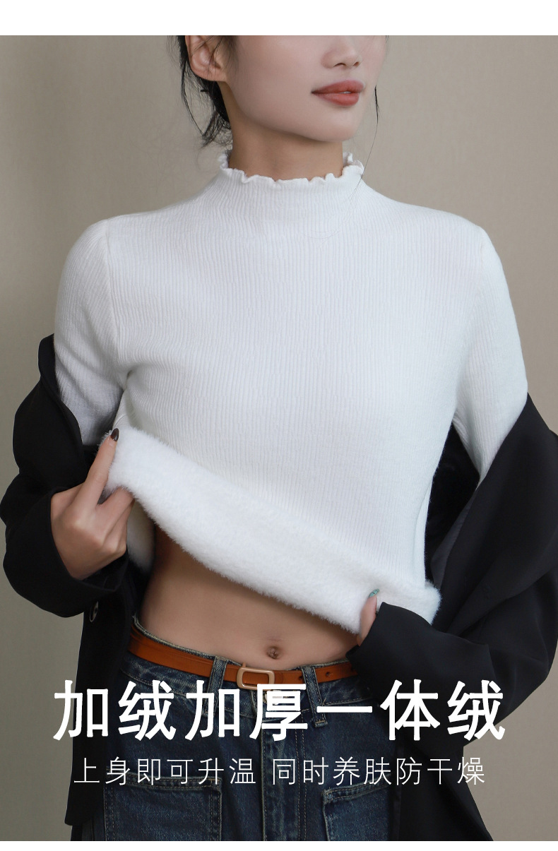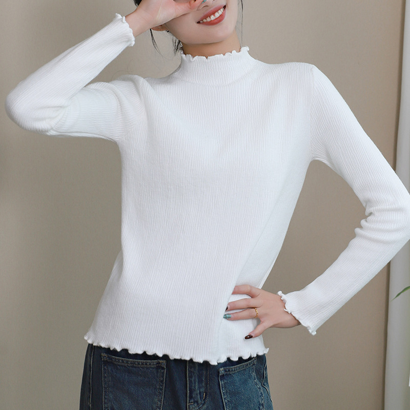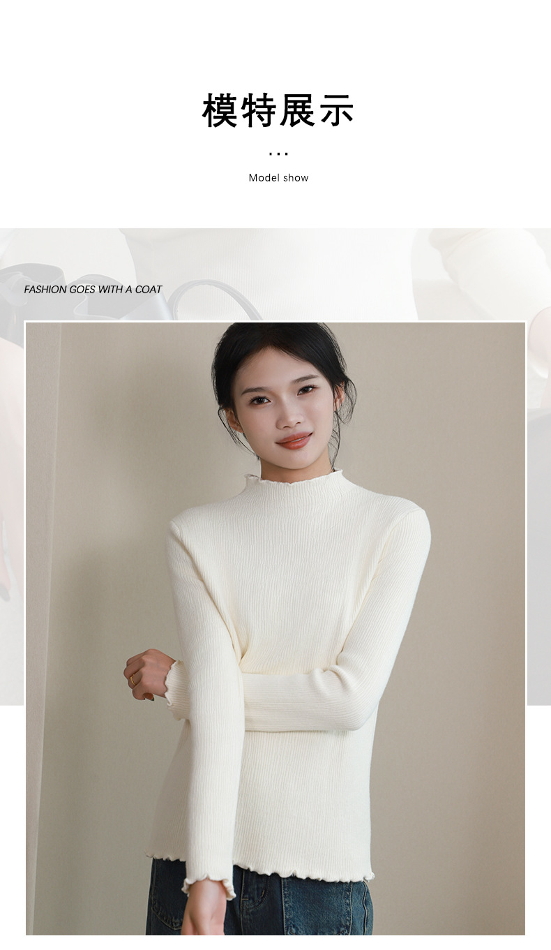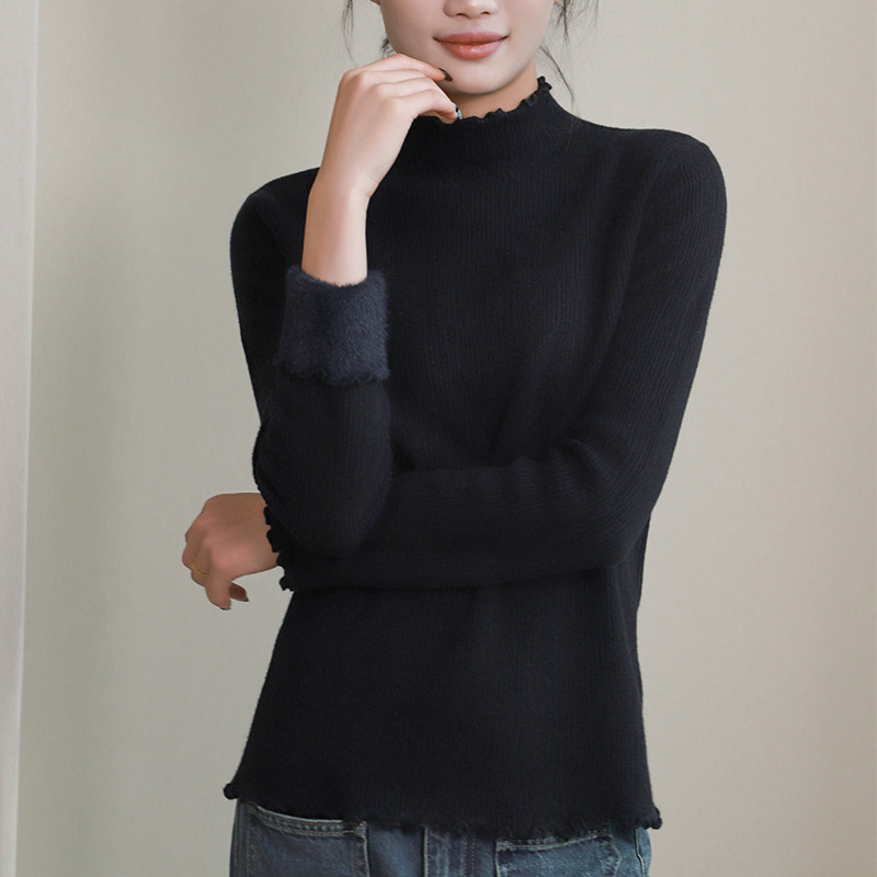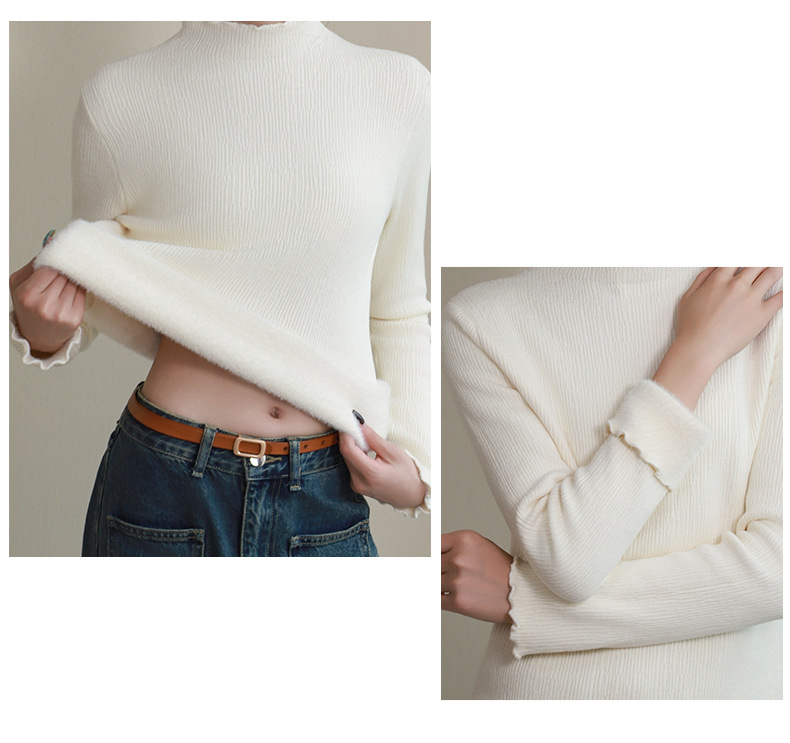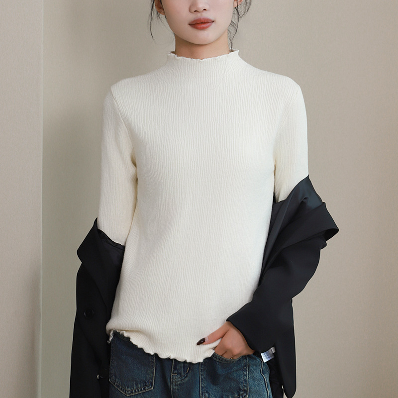 반 높이 칼라베이스 셔츠 여성 가을 및 겨울 외국인 스타일 내복 착용 가능한 여성 스웨터 이어 엣지 기모 두껍게