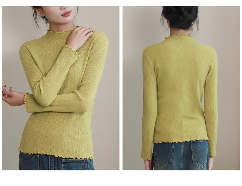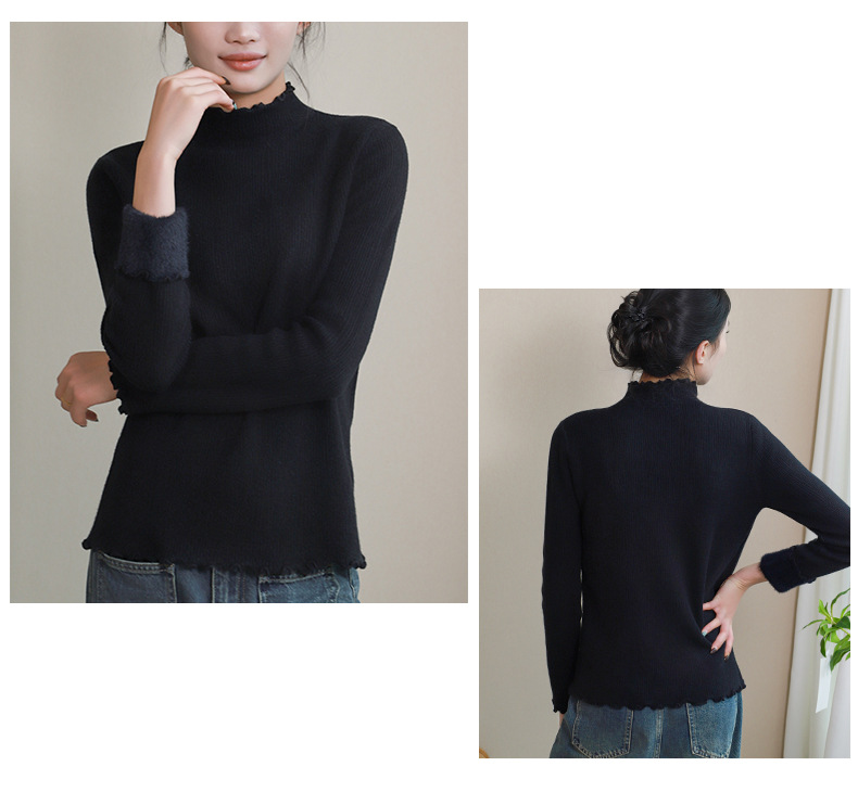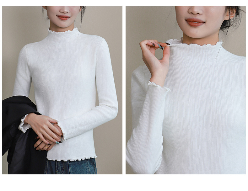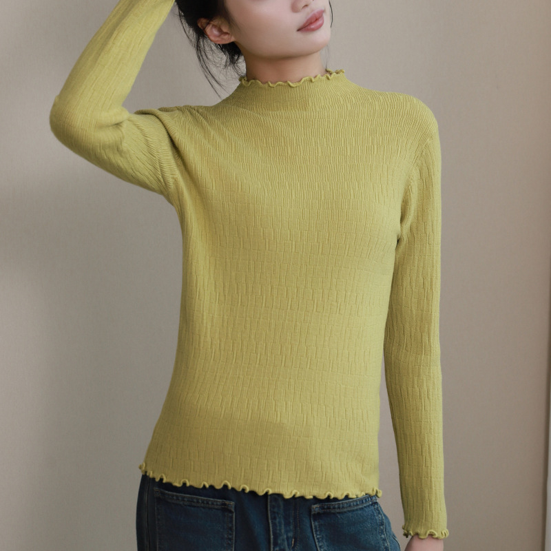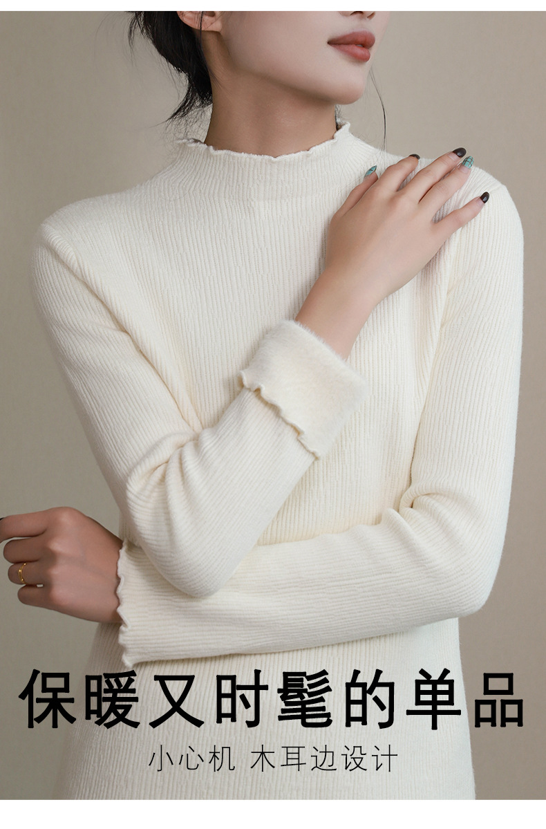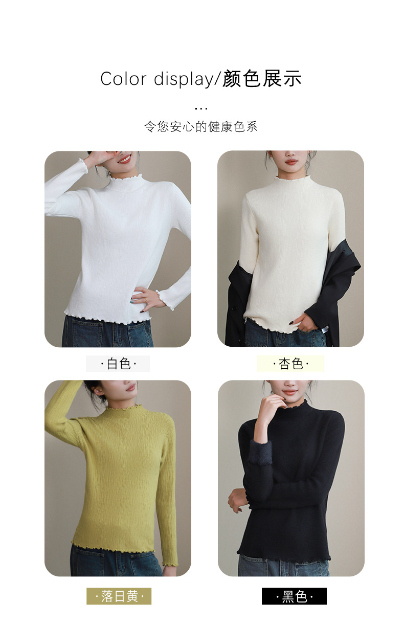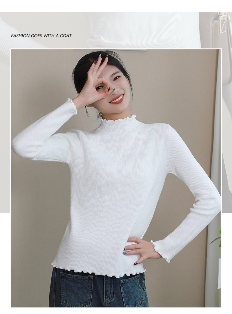 반 높이 칼라베이스 셔츠 여성 가을 및 겨울 외국인 스타일 내복 착용 가능한 여성 스웨터 이어 엣지 기모 두껍게