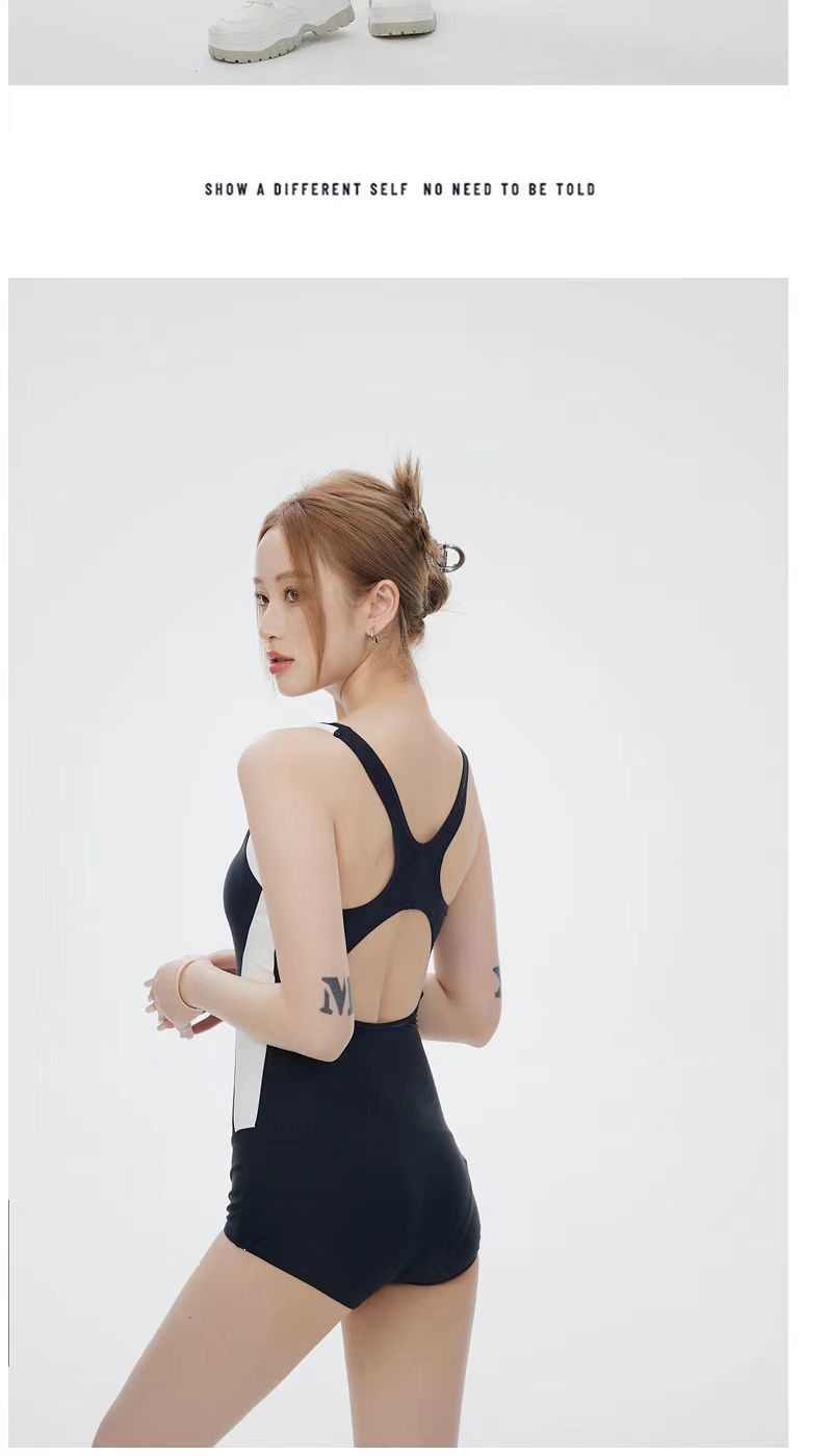 2023 새로운 작은 가슴 모임, 보수적 인 플랫 코너 벨리 커버 슬리밍 온천 경쟁 전문 수영 세트