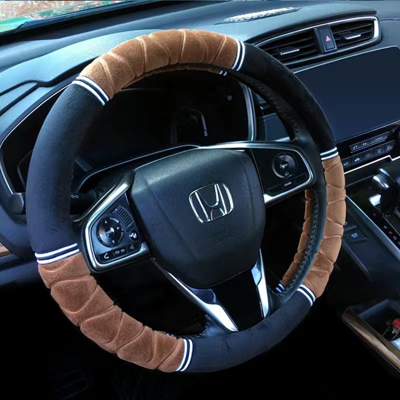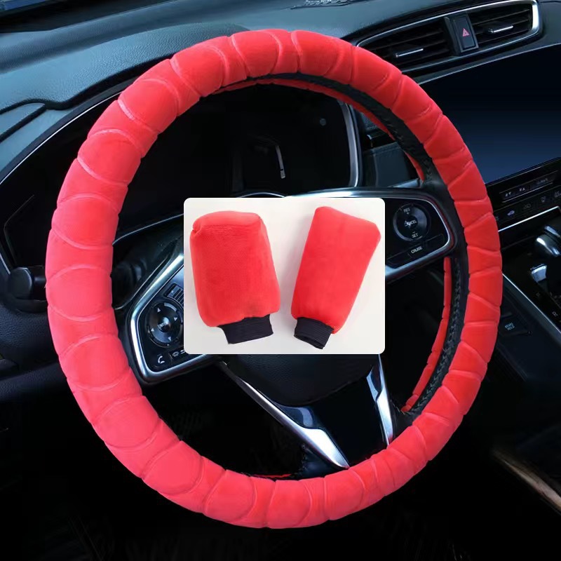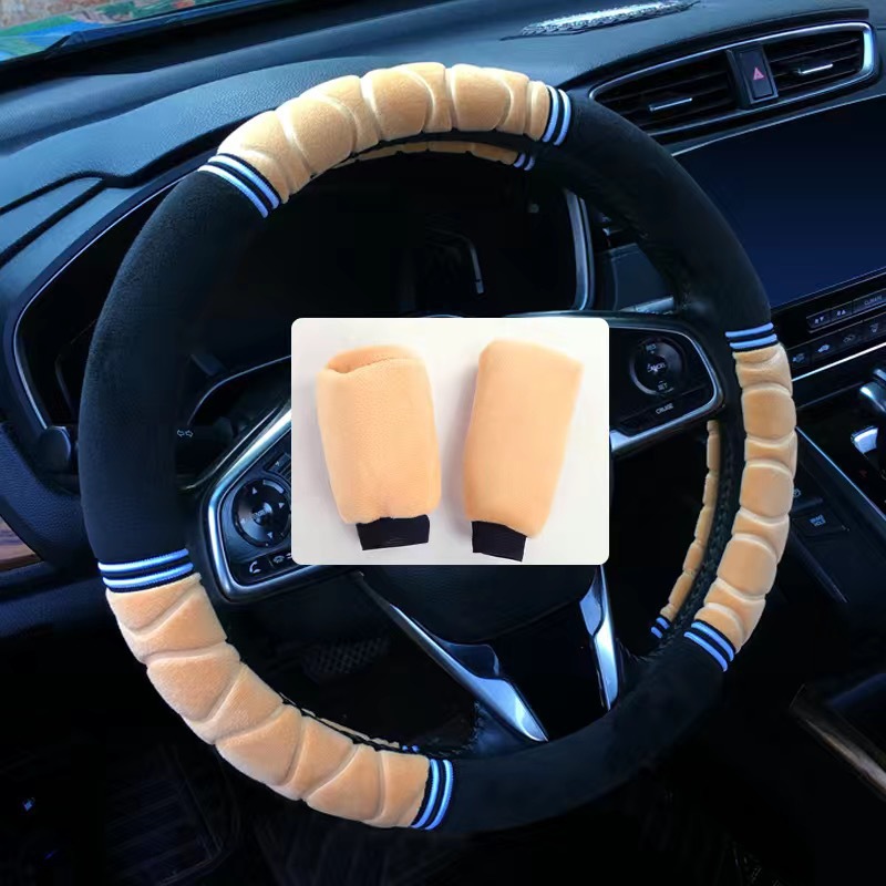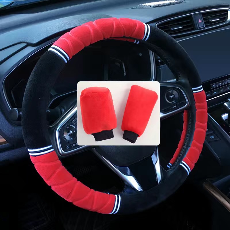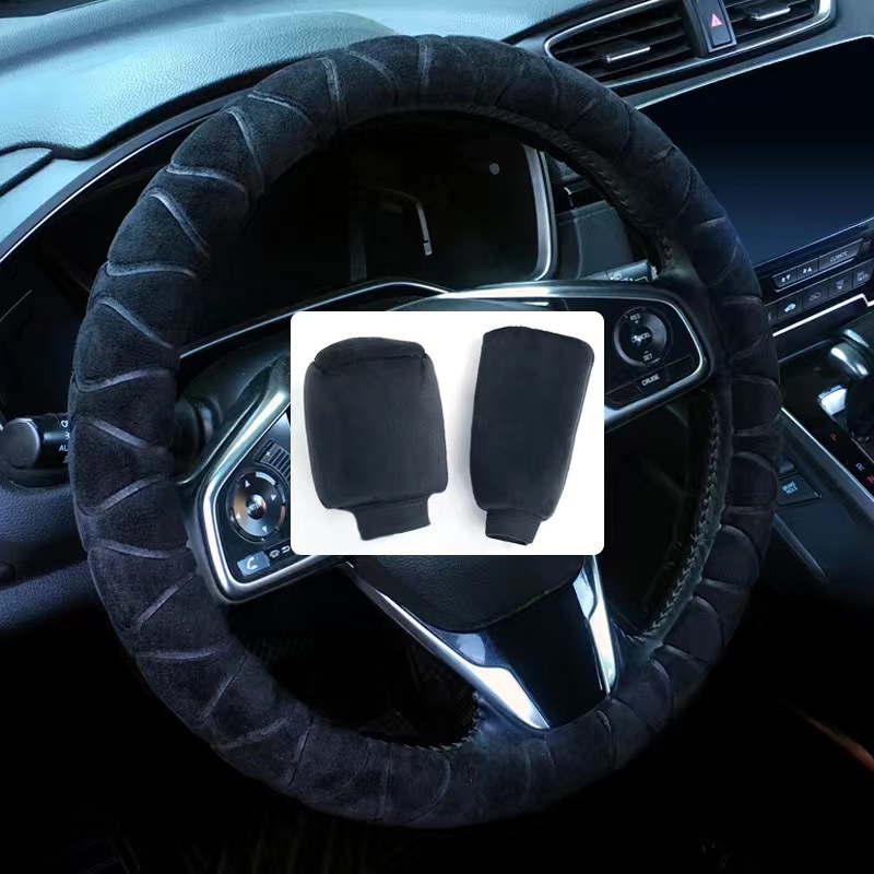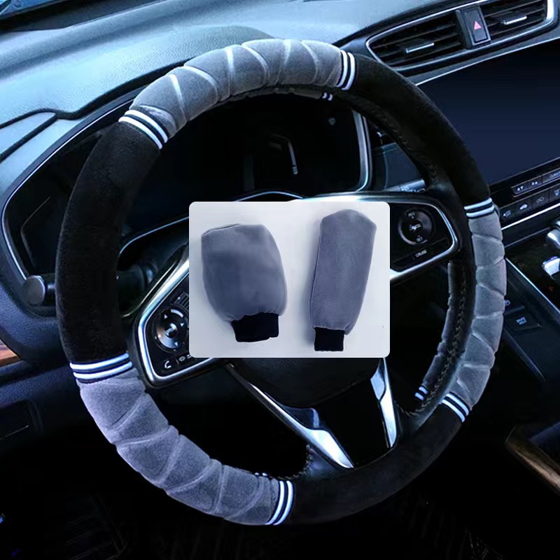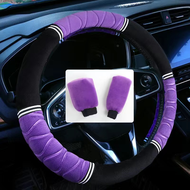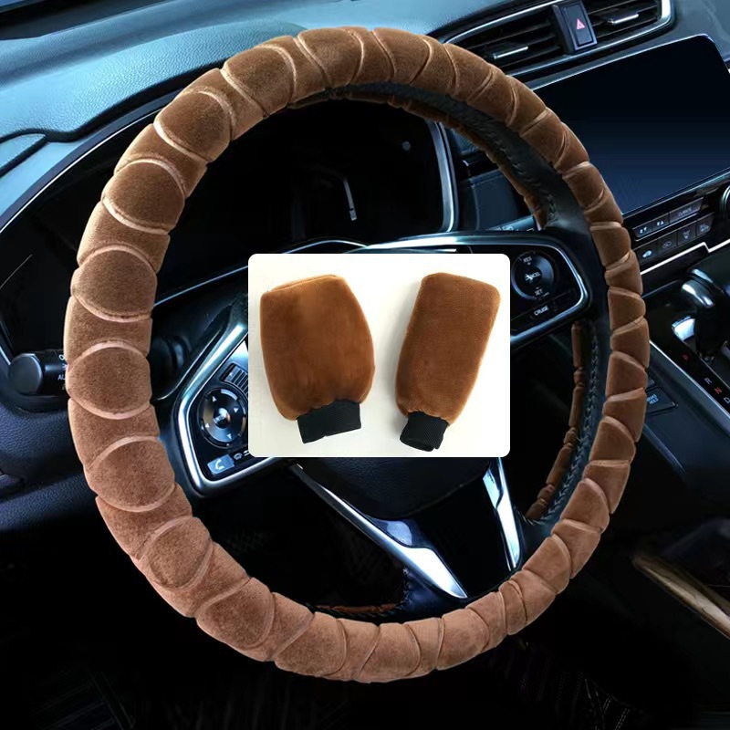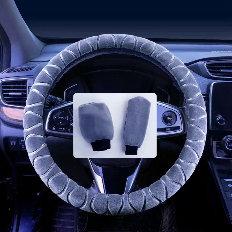 자동차 스티어링 휠 커버 플러시 카 핸들 커버 길고 짧은 플러시 가을과 겨울 3 피스 세트 유니섹스 따뜻한 미끄럼 방지