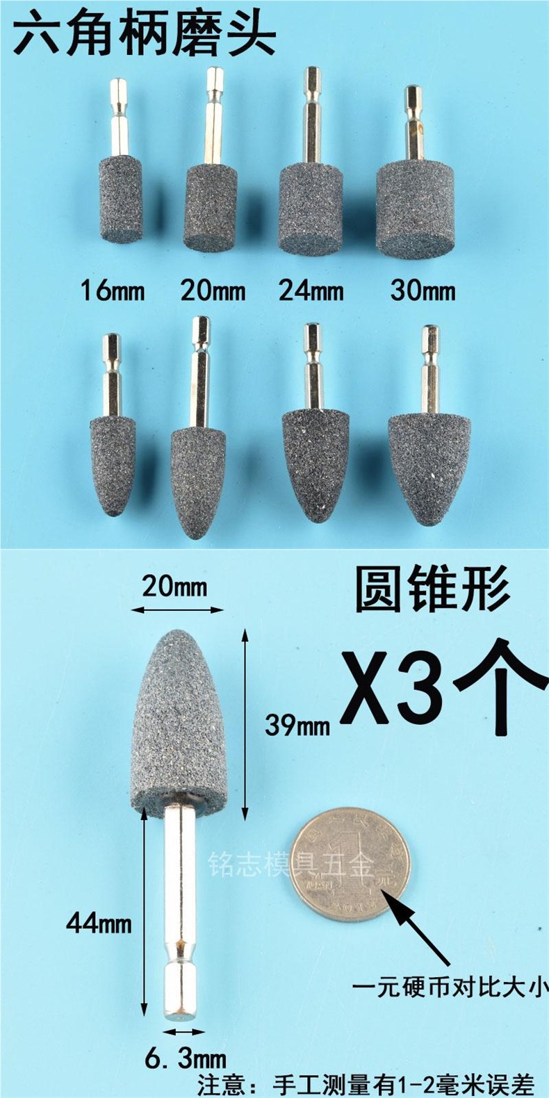 • 육각 생크 연삭 헤드 3개 16mm 콘