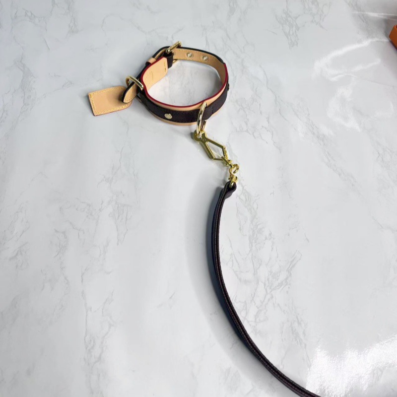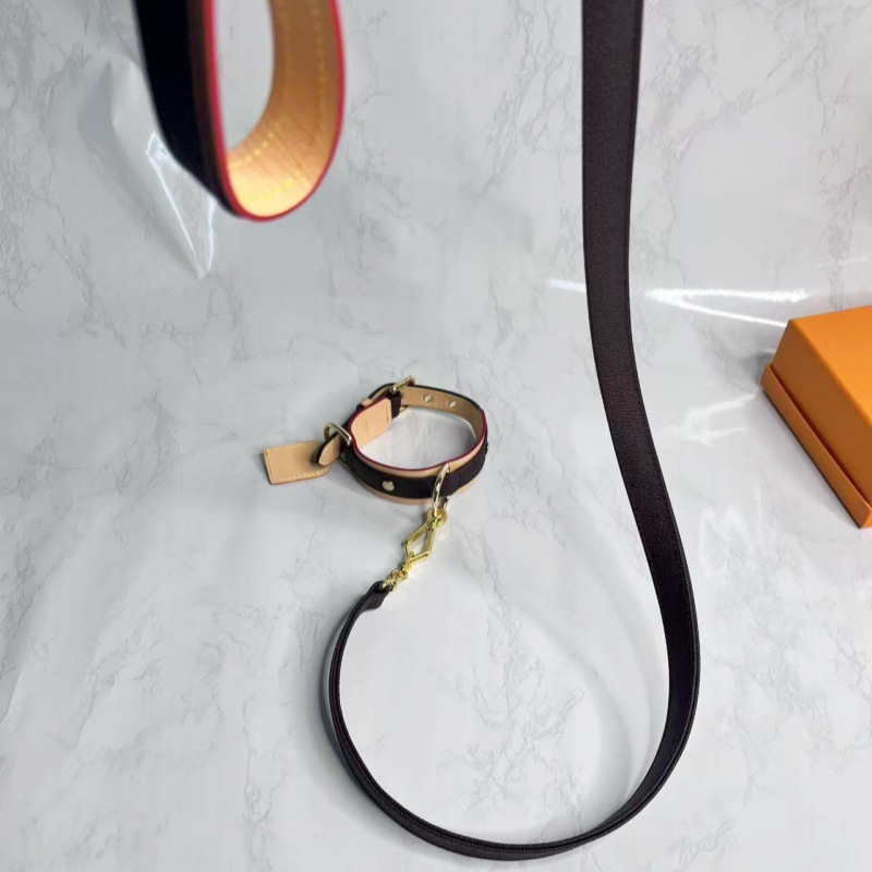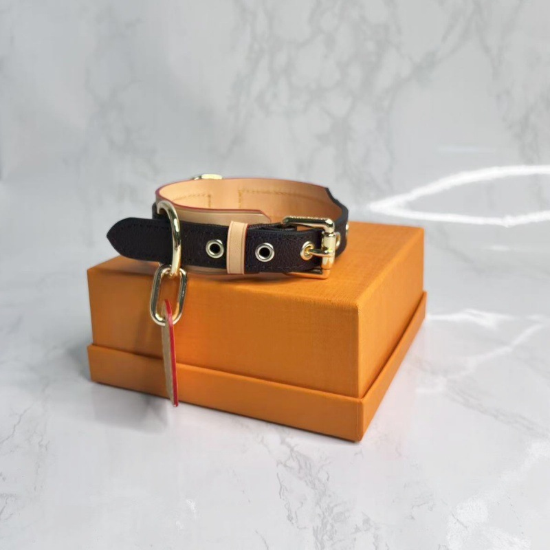 现货狗狗项圈牵引绳配变色牛皮