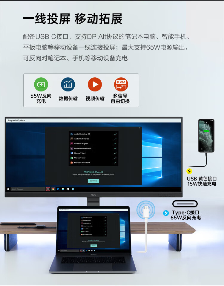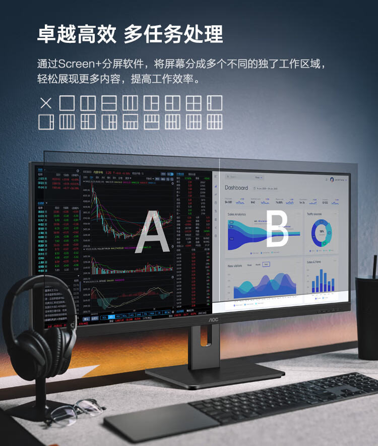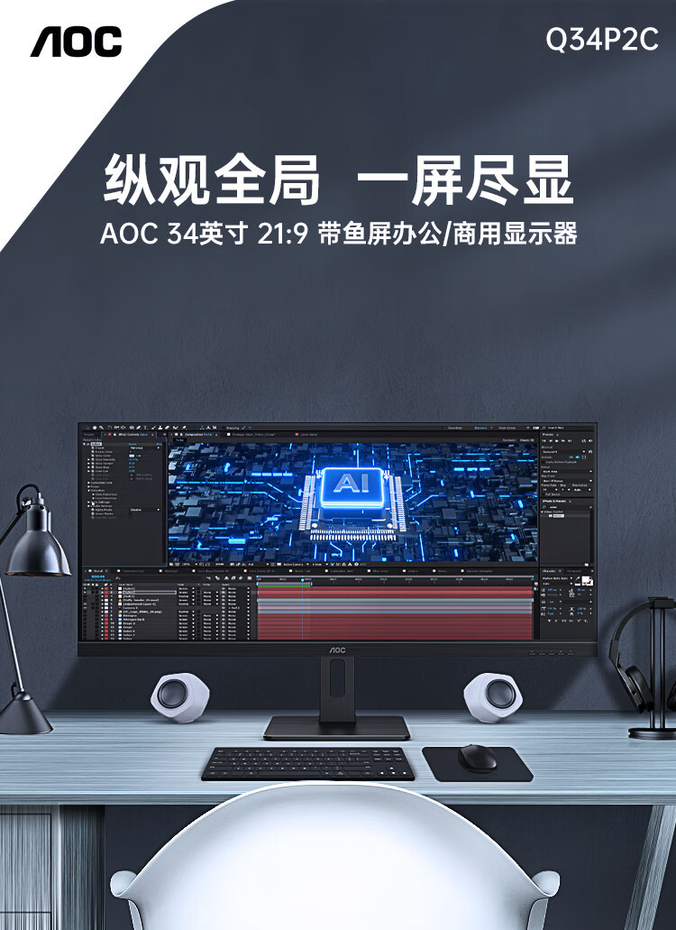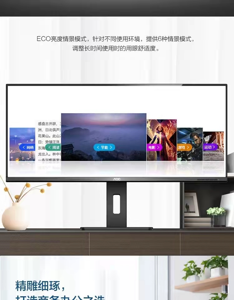AOC2K HD IPS 기술 낮은 블루라이트 비플래시 회전 리프팅 홈 디자인 피쉬 스크린 컴퓨터 모니터스토어 가기