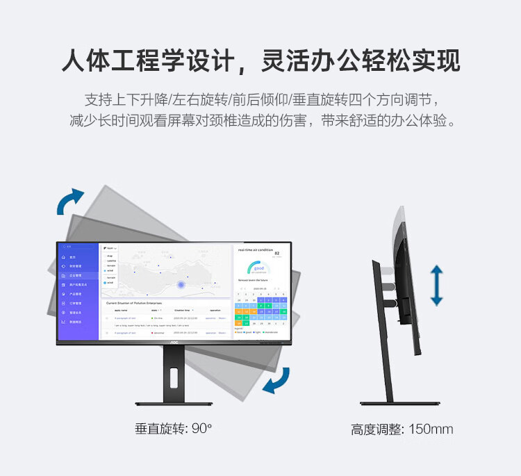 AOC2K HD IPS 기술 낮은 블루라이트 비플래시 회전 리프팅 홈 디자인 피쉬 스크린 컴퓨터 모니터