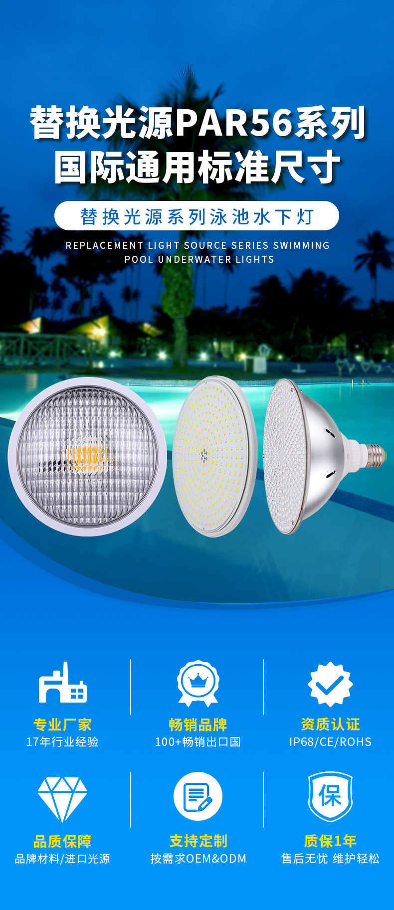 국제 크기의 고출력 PAR56 수영장 벽 램프 30W 다채로운 RGB 수중 LED 램프 컵 전구 교체 광원스토어 가기
