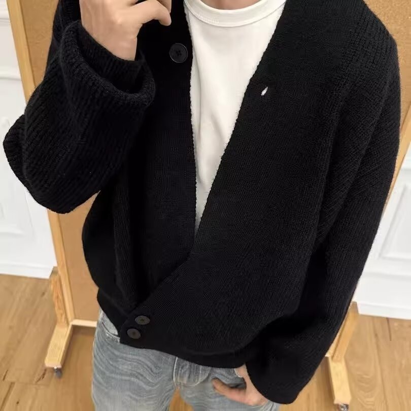 클린 핏 카디건 코트 남성용 봄과 가을 올드 머니 스타일 로브 스웨터 게으른 하이 엔드 V 넥 스웨터스토어 가기