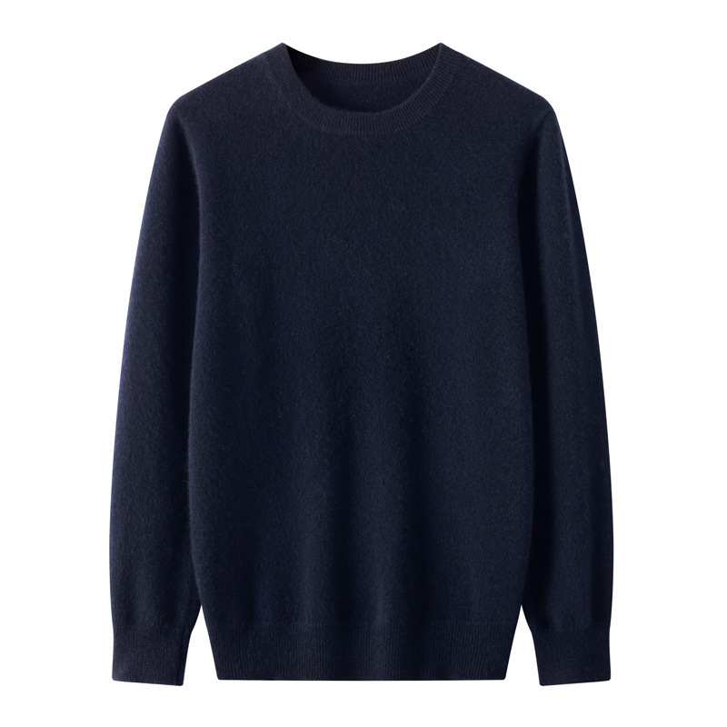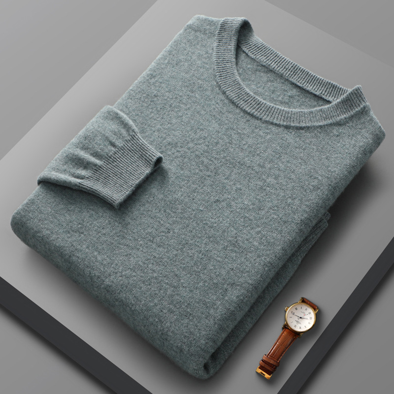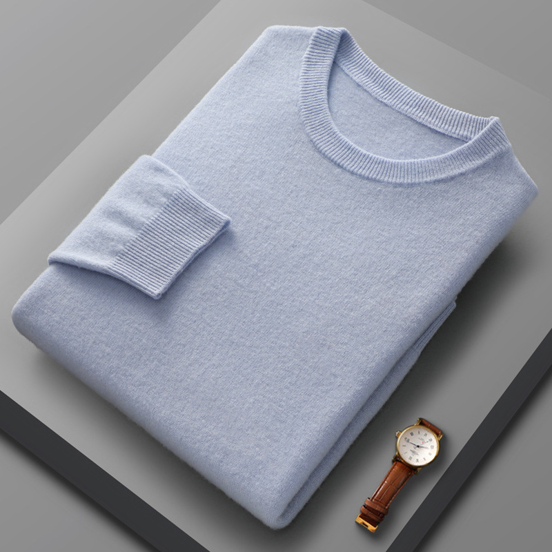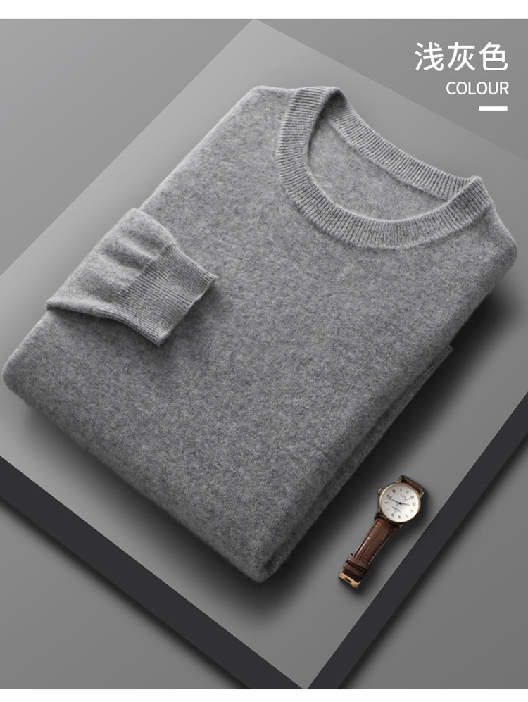 2024 가을과 겨울 남자 100 모직 스웨터 둥근 목 단색 풀오버 긴 소매 내부 스웨터 따뜻한