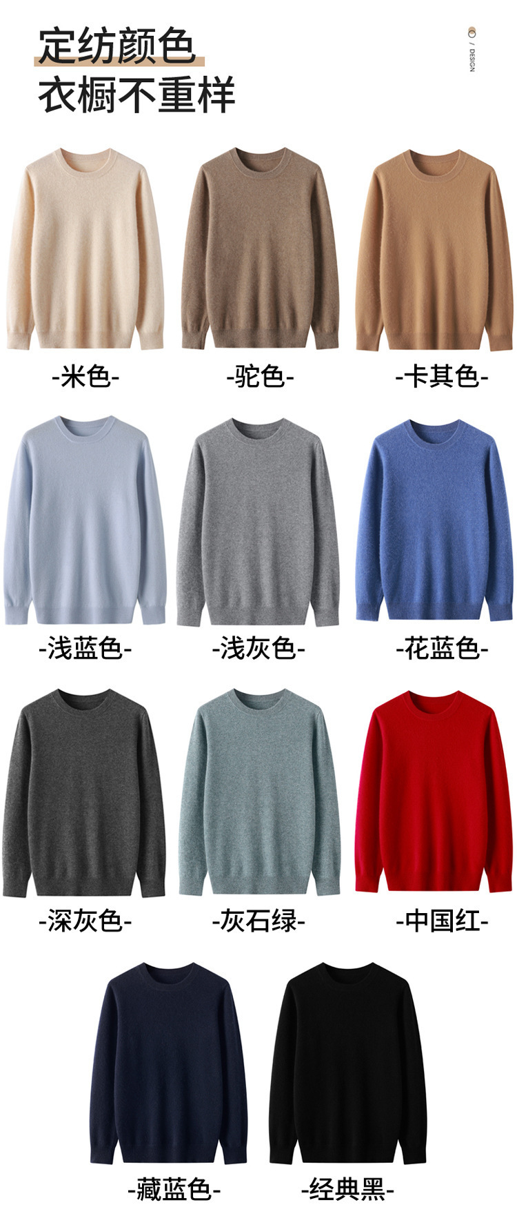 2024 가을과 겨울 남자 100 모직 스웨터 둥근 목 단색 풀오버 긴 소매 내부 스웨터 따뜻한스토어 가기