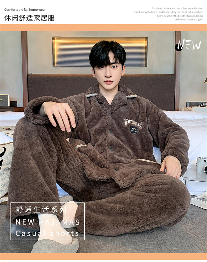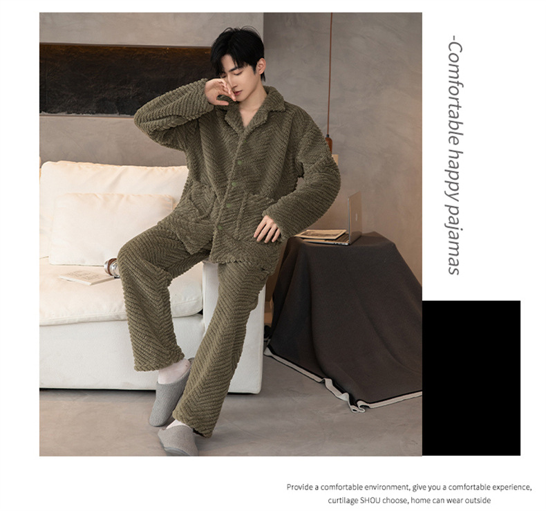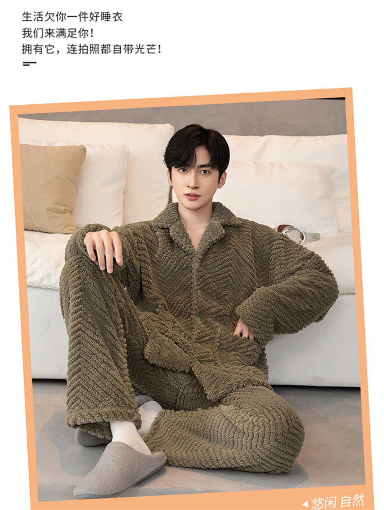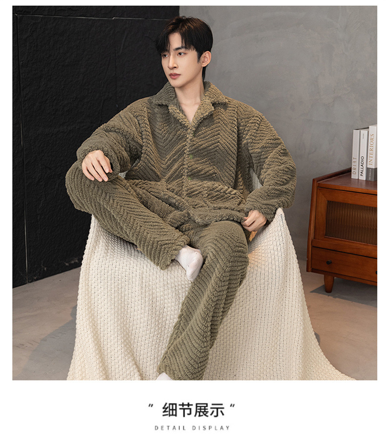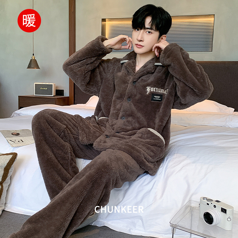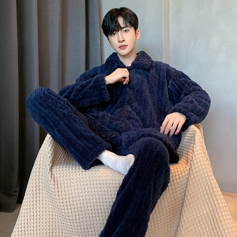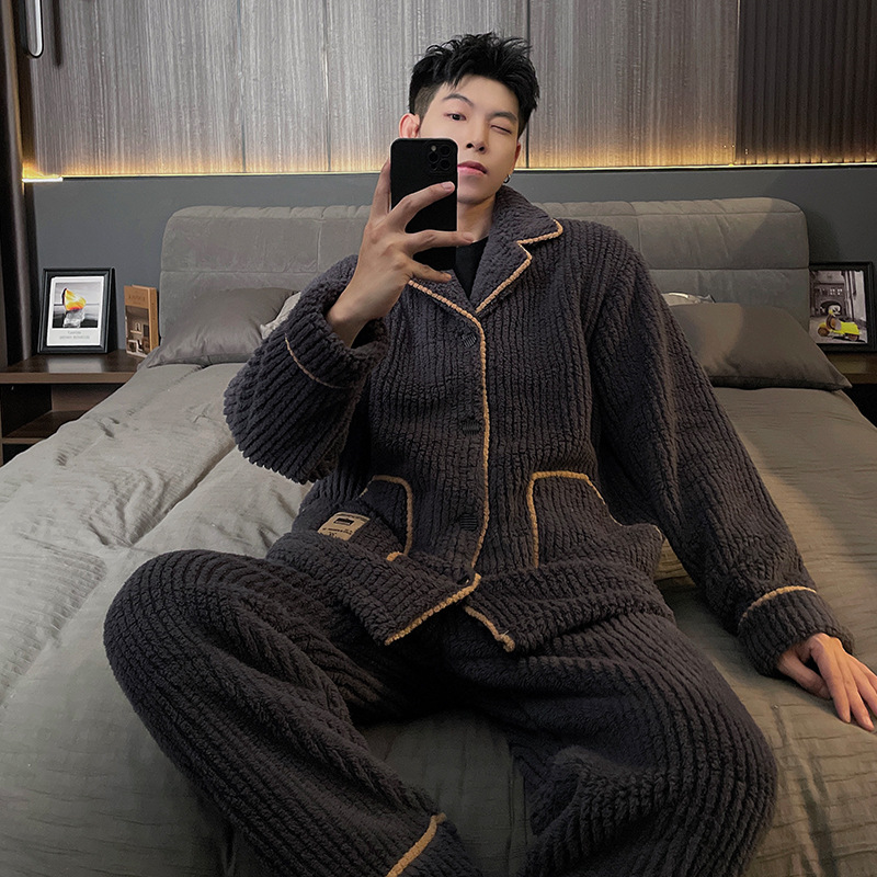 산호 양털 잠옷 남자의 겨울 기모 가을과 겨울 새로운 도착 플란넬 남자 옷깃 카디건 홈 옷스토어 가기