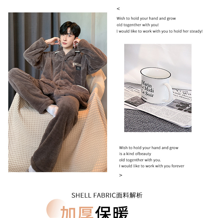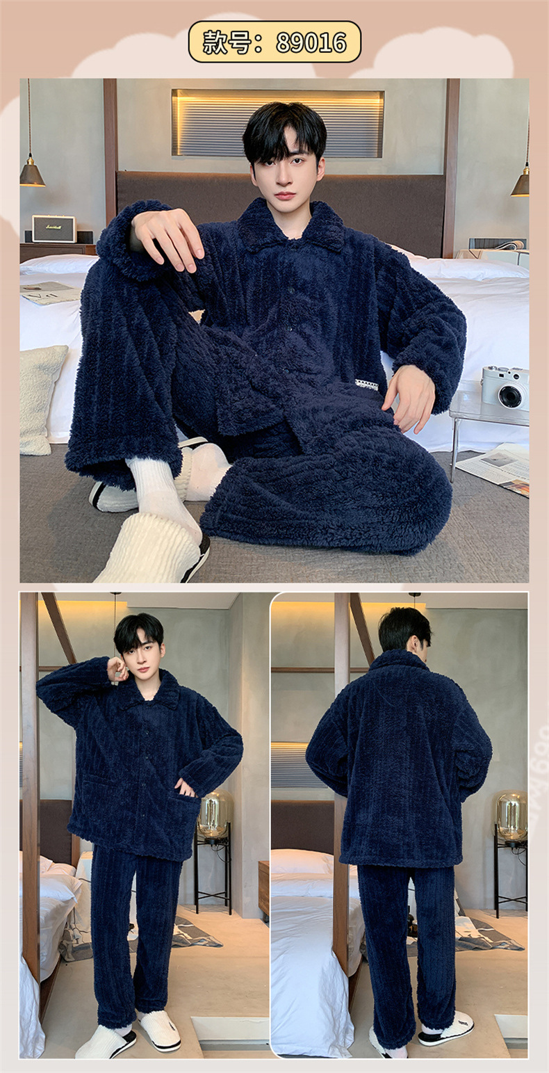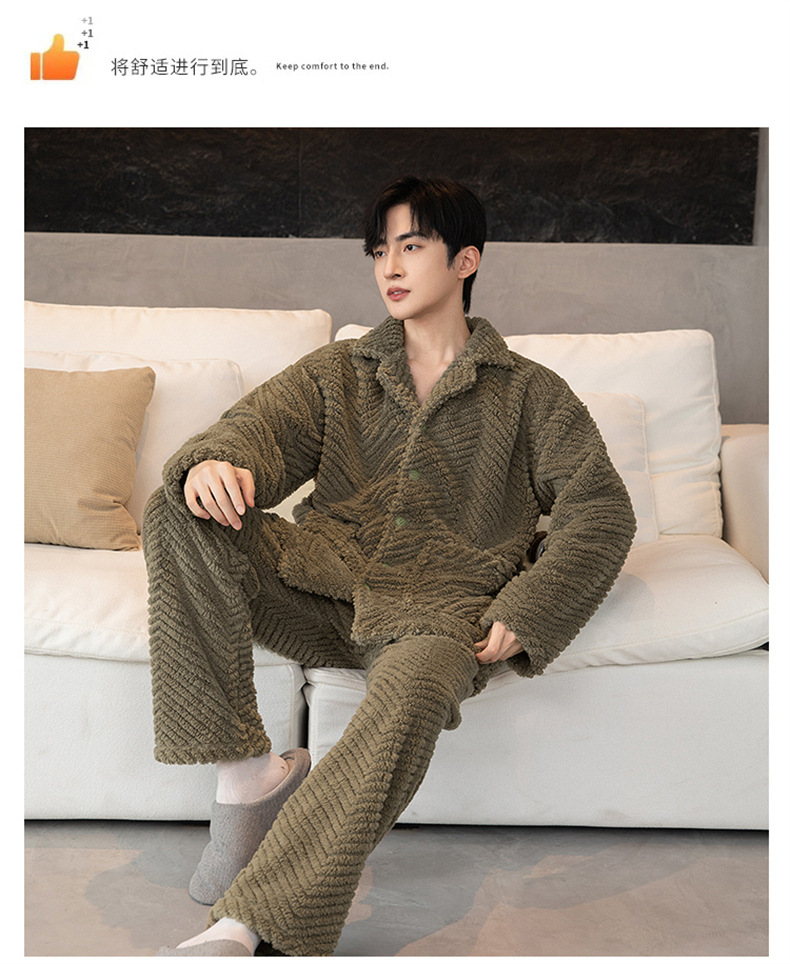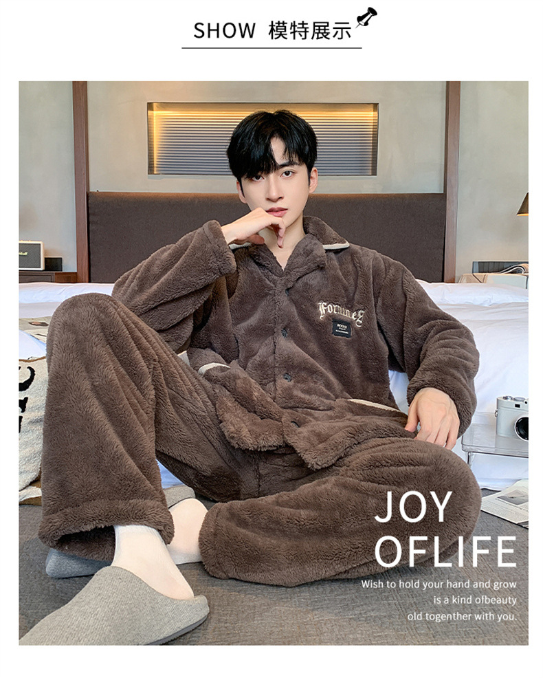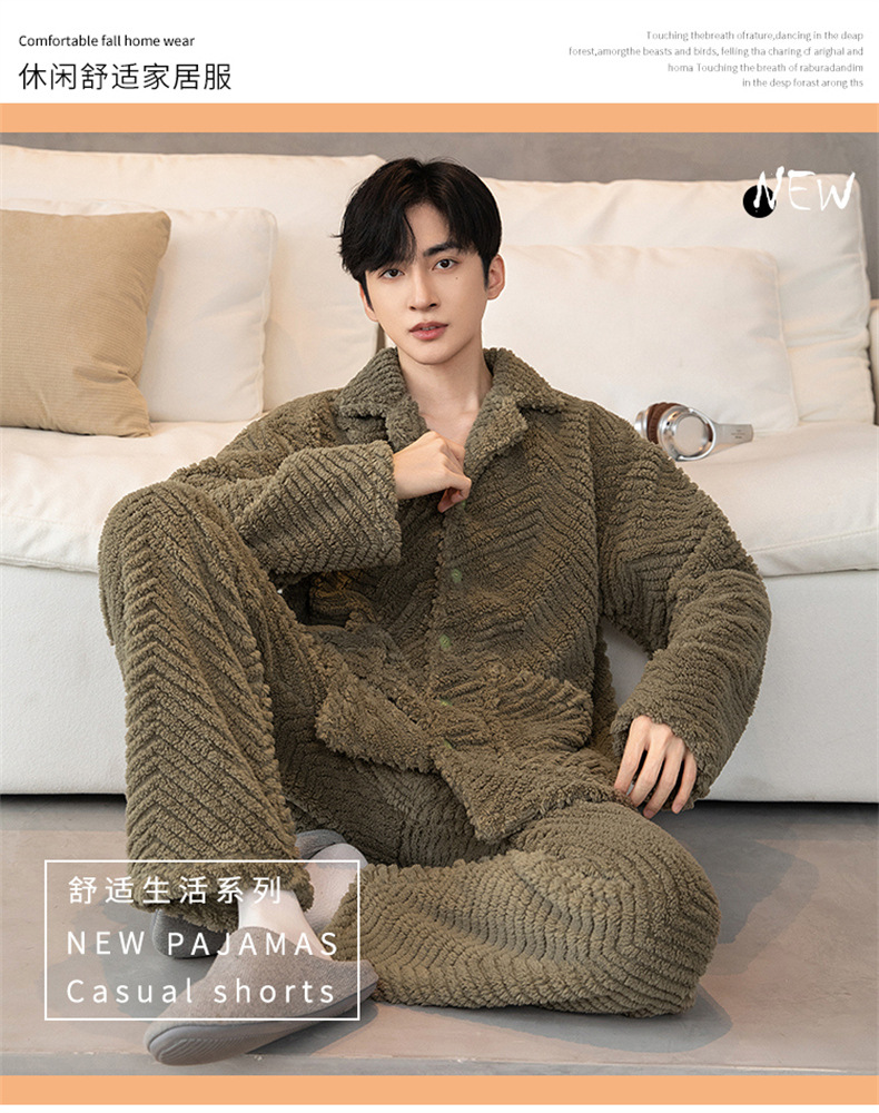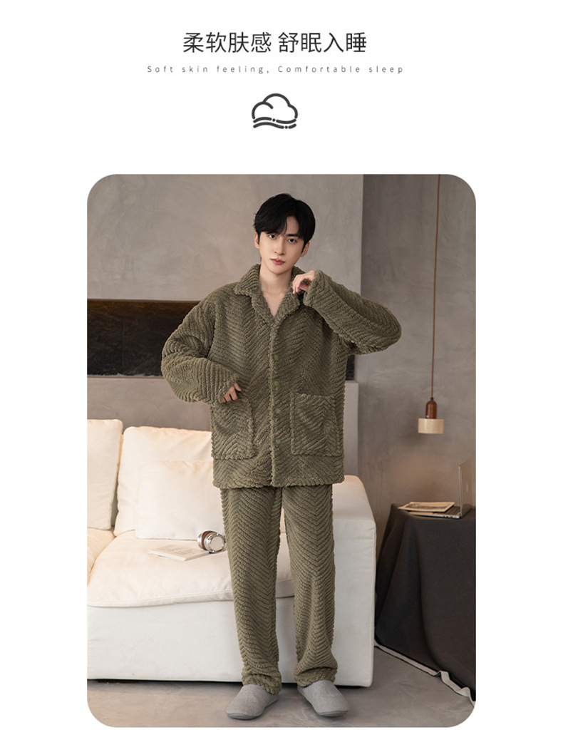 산호 양털 잠옷 남자의 겨울 기모 가을과 겨울 새로운 도착 플란넬 남자 옷깃 카디건 홈 옷스토어 가기