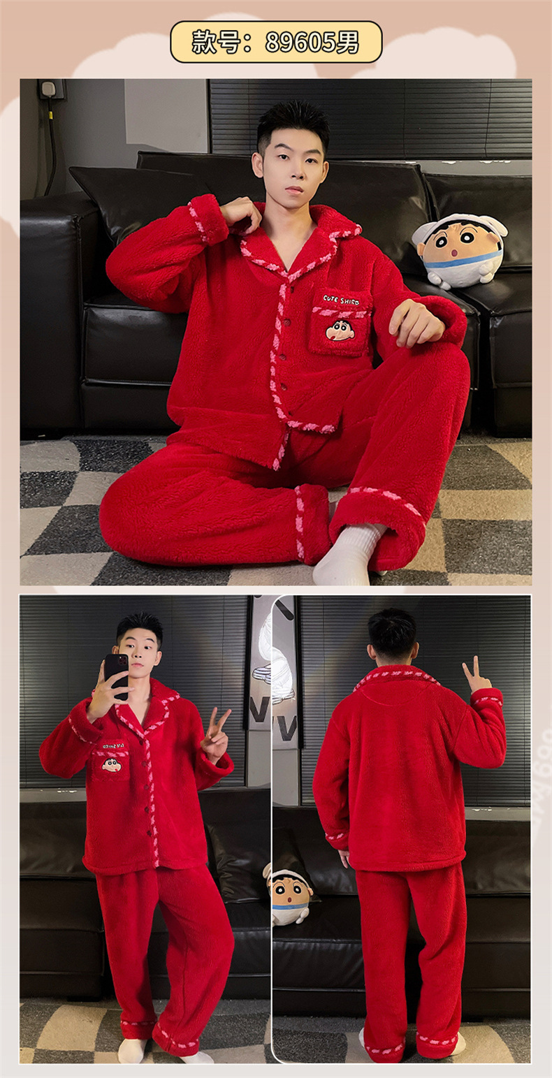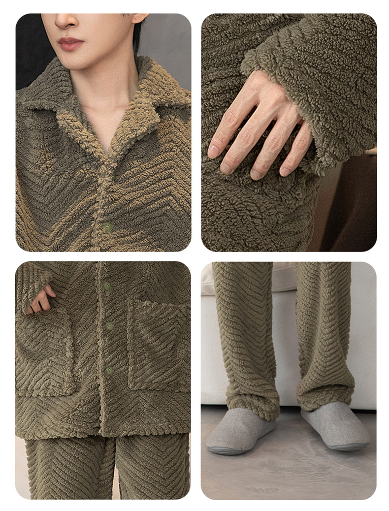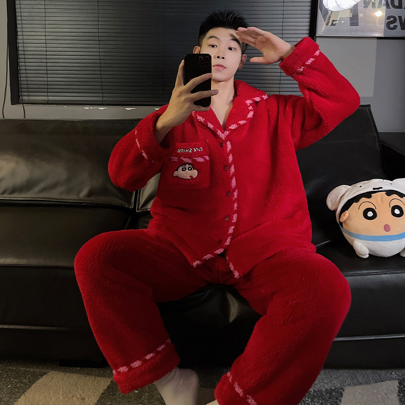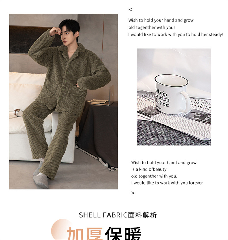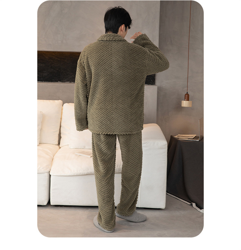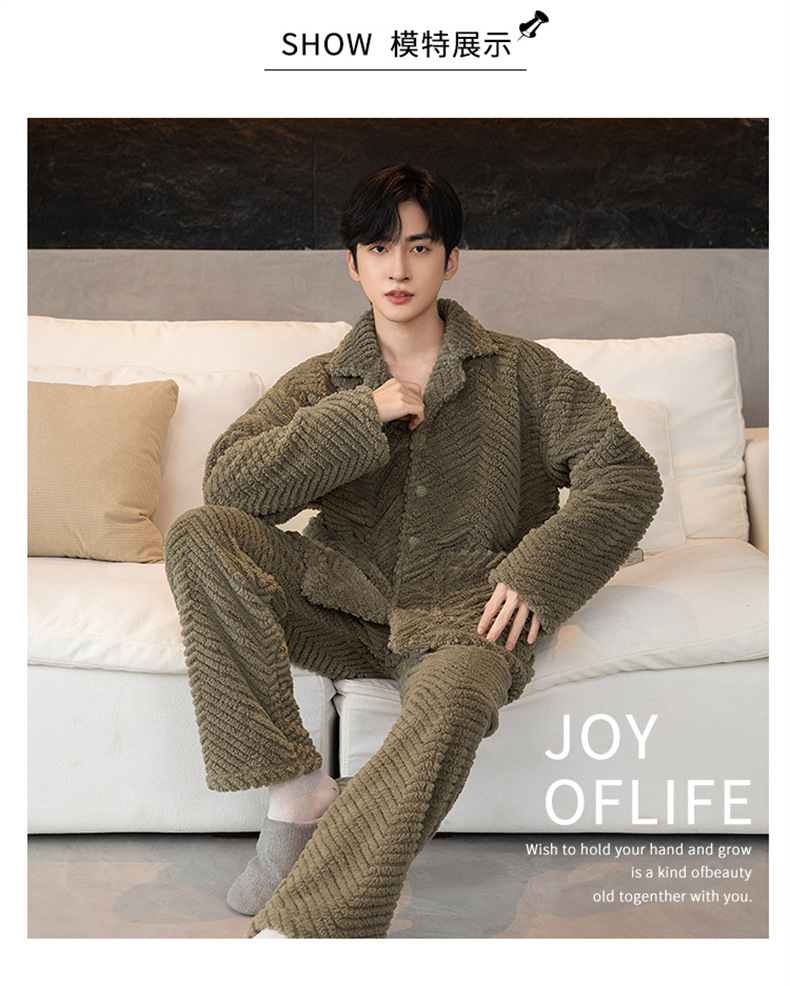 산호 양털 잠옷 남자의 겨울 기모 가을과 겨울 새로운 도착 플란넬 남자 옷깃 카디건 홈 옷스토어 가기