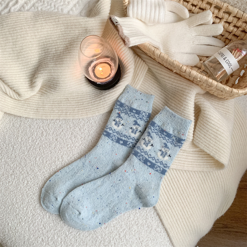 두꺼운 가을과 겨울 새로운 항해 섬 스타일 양모 양말 일본식 도트 원사 눈사람 두꺼운 따뜻한 힙 양말