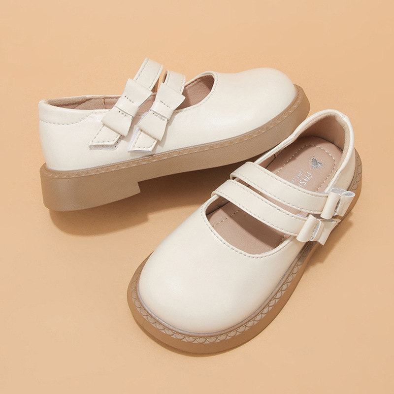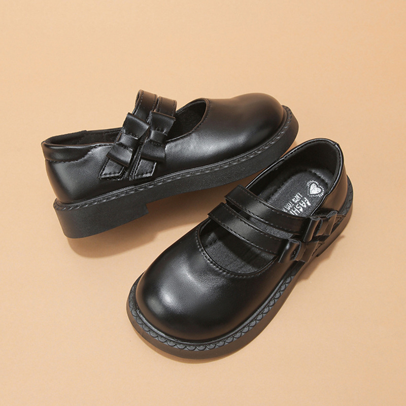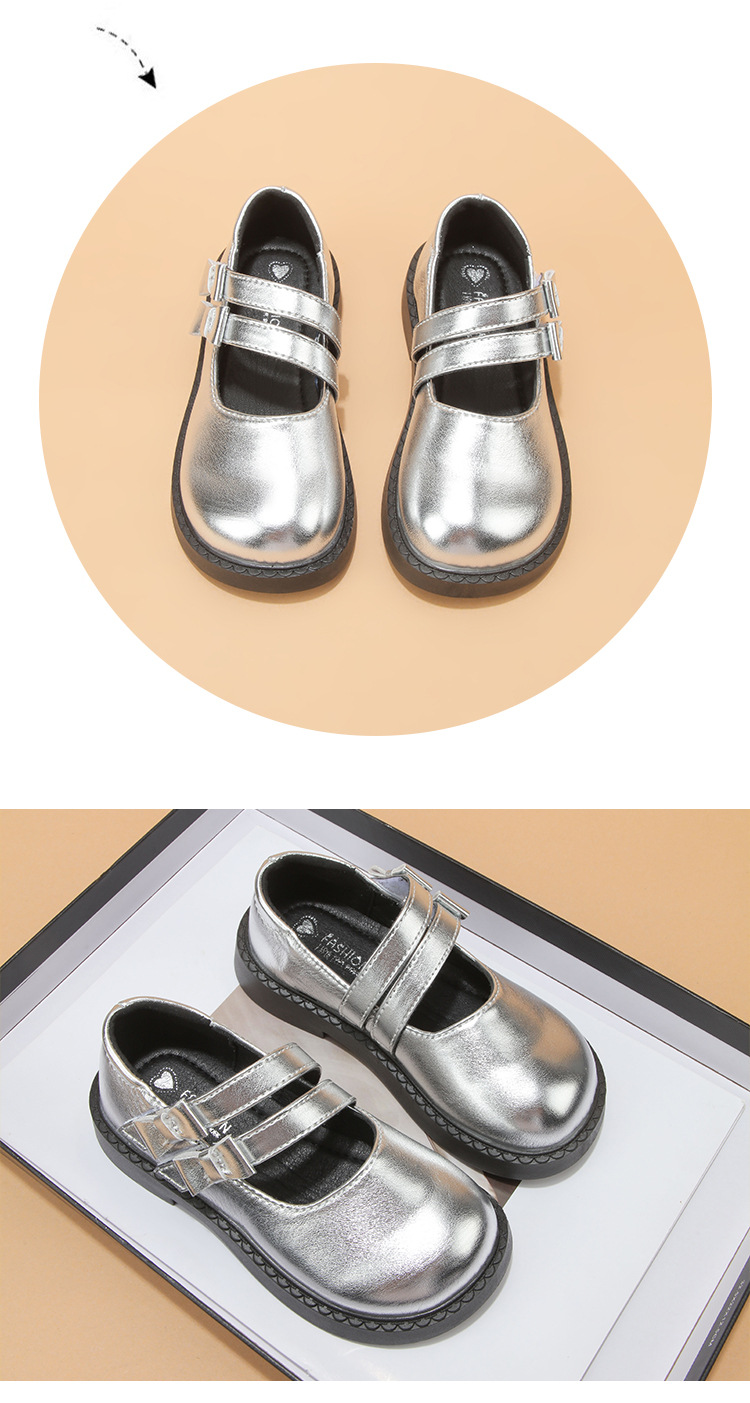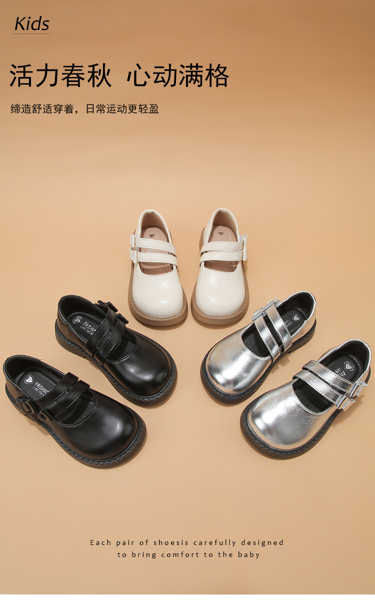 소녀 작은 가죽 신발 2025 봄과 가을 새로운 도착 작은 소녀 신발 세련된 싱글 레이어 신발 공주 신발 소프트 단독 중대형 어린이 가죽 신발
