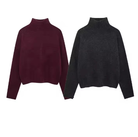 크로스보더 INS 가을 여성복 인기 유럽풍 여성 패션 하이넥 긴팔 부드러운 기본 니트웨어스토어 가기