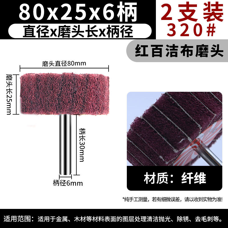 • 빨간색 수세미 연삭 헤드 80*25*6 손잡이 320 메쉬 [2 개]