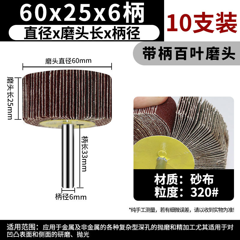 • 손잡이가 있는 루버 연삭 헤드 60*25*6 손잡이 320 메쉬 [10개]