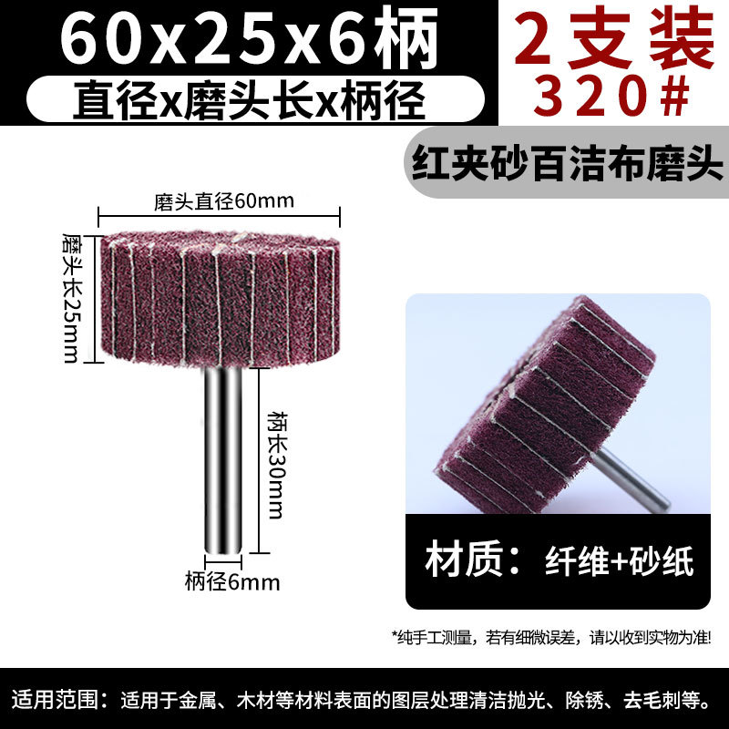 • 붉은 모래 수세미 연삭 헤드 60*25*6 손잡이 320 메쉬 [2 개]