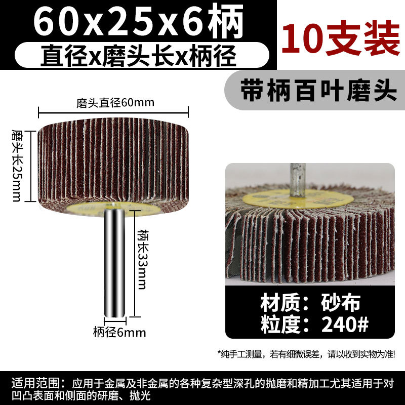 • 손잡이가 있는 루버 연삭 헤드 80*25*6 손잡이 240 메쉬 [10개]