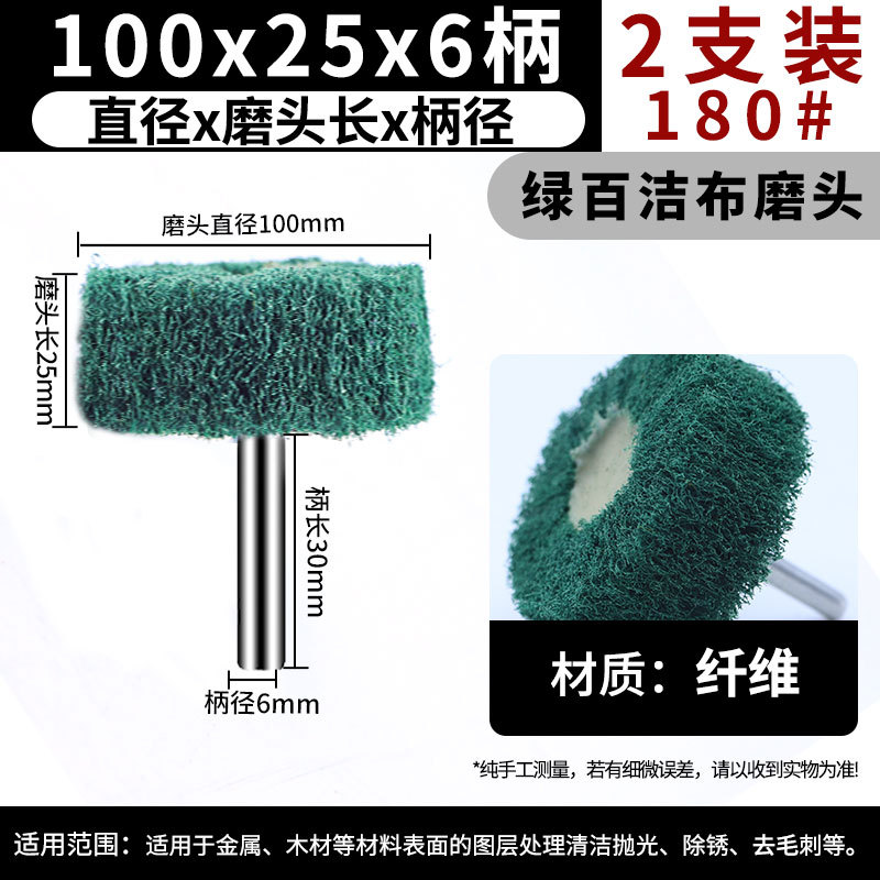 • 녹색 수세미 연삭 헤드 100*25*6 손잡이 180 메쉬 [2 개]
