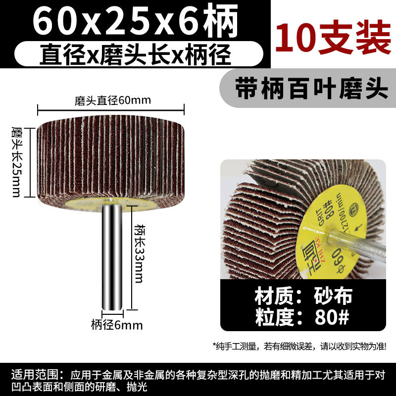 • 손잡이가 있는 루버 연삭 헤드 60*25*6 손잡이 80 메쉬 [10개]