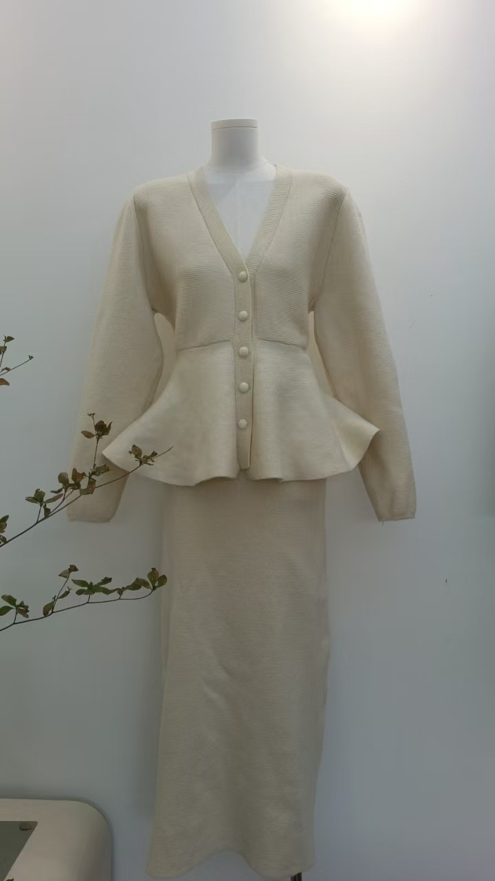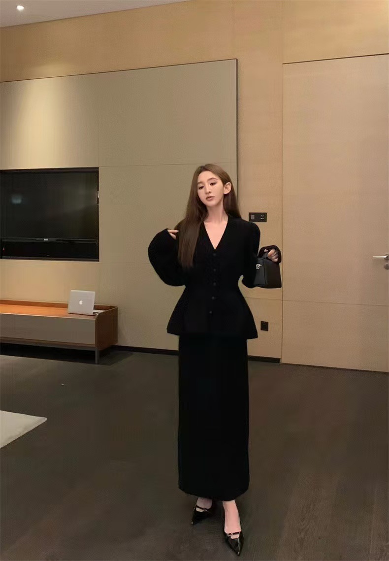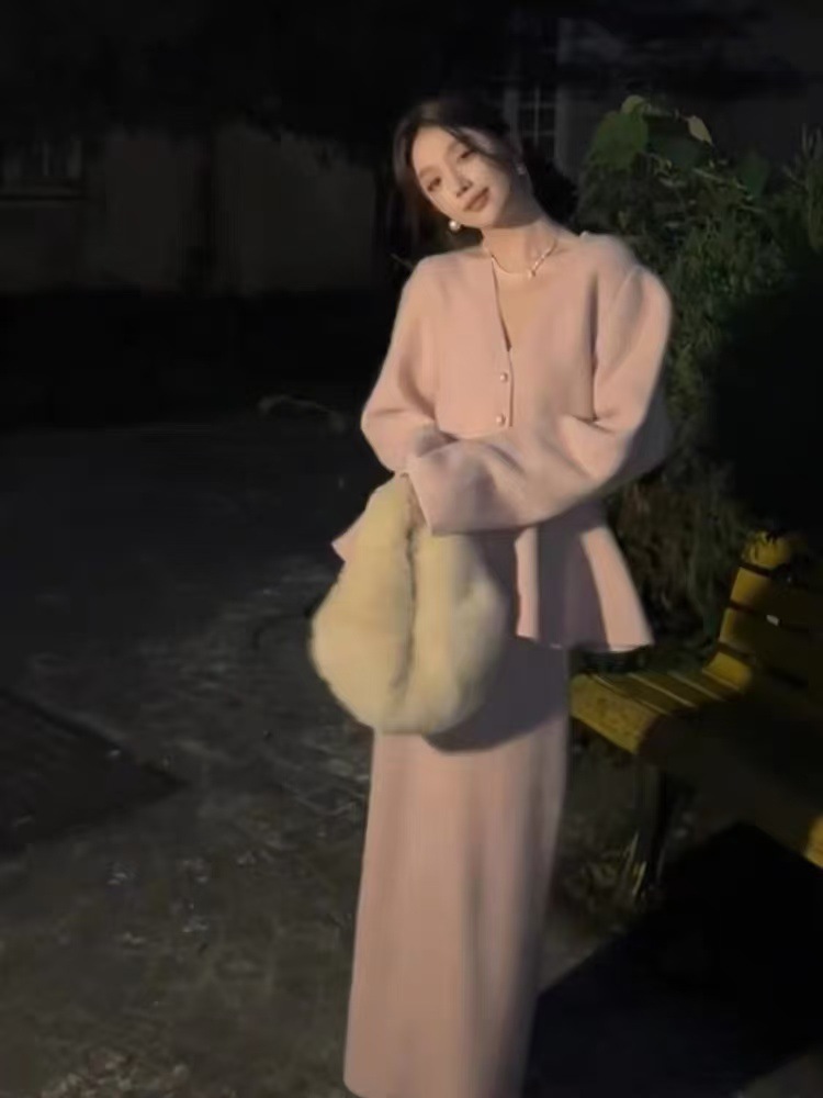 Winter Gentle Wear 여성용 2024 새로운 한국식 타이트 허리 슬리밍 니트 스웨터 올 매치 스커트 투피스 세트스토어 가기
