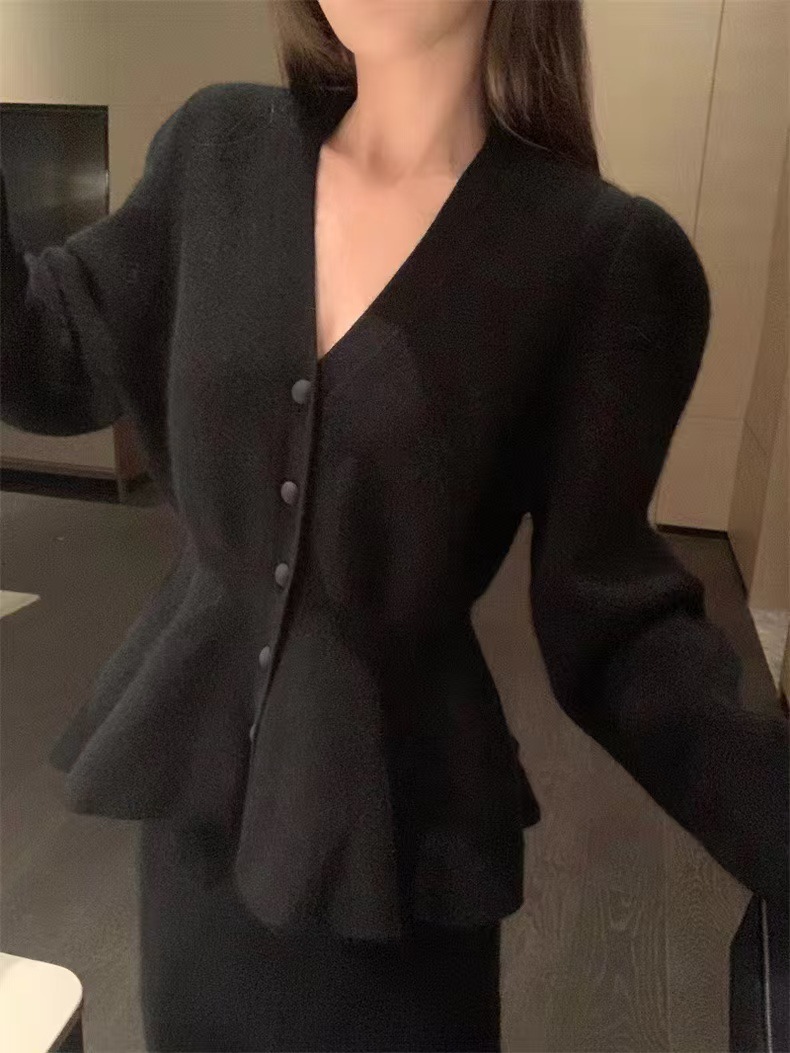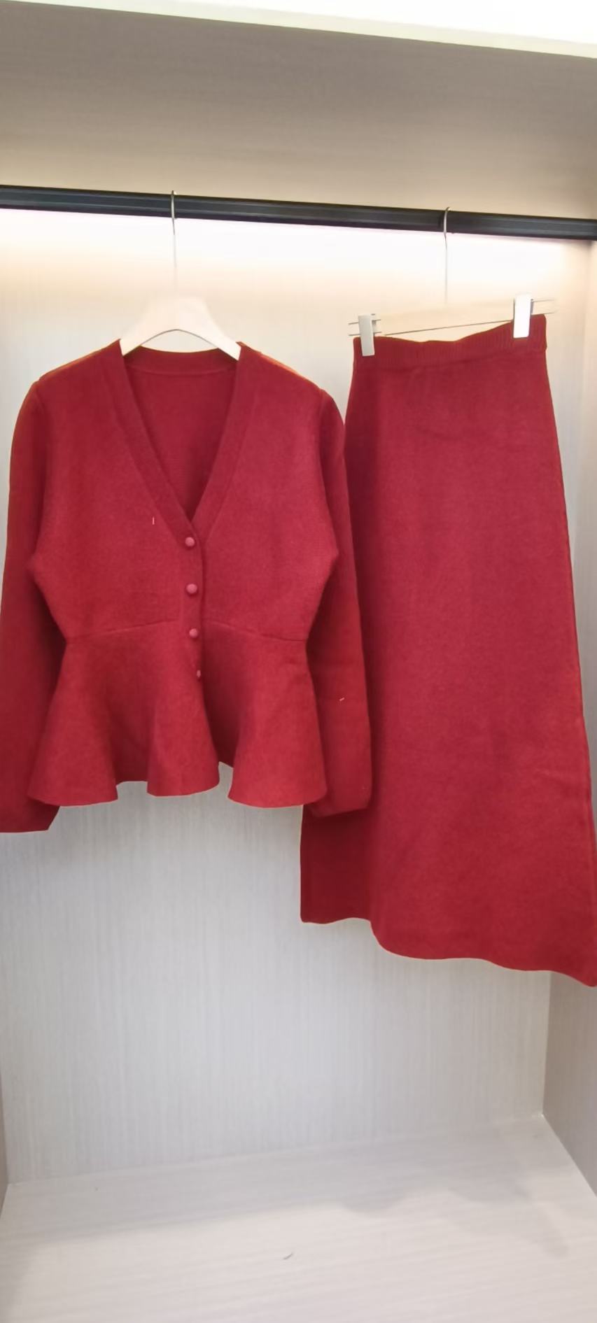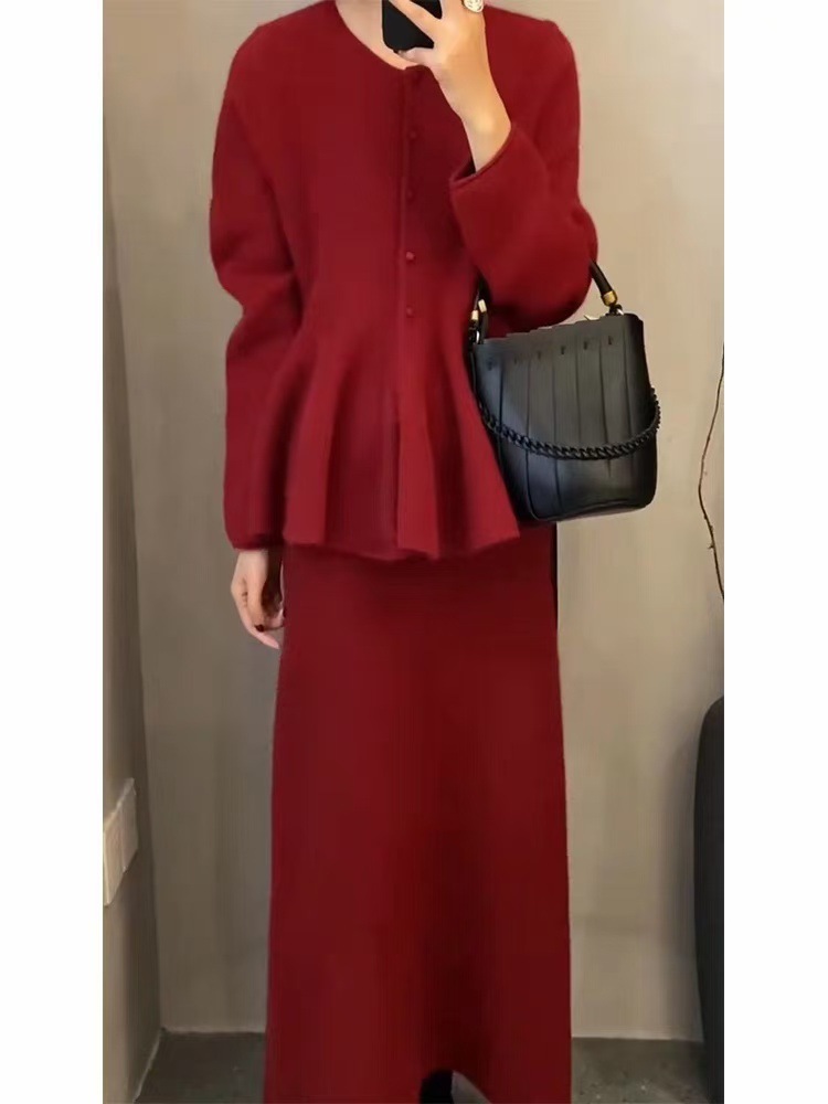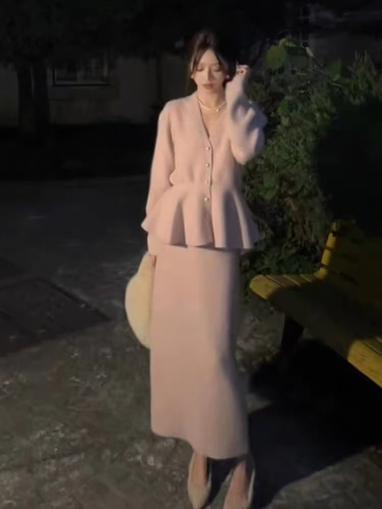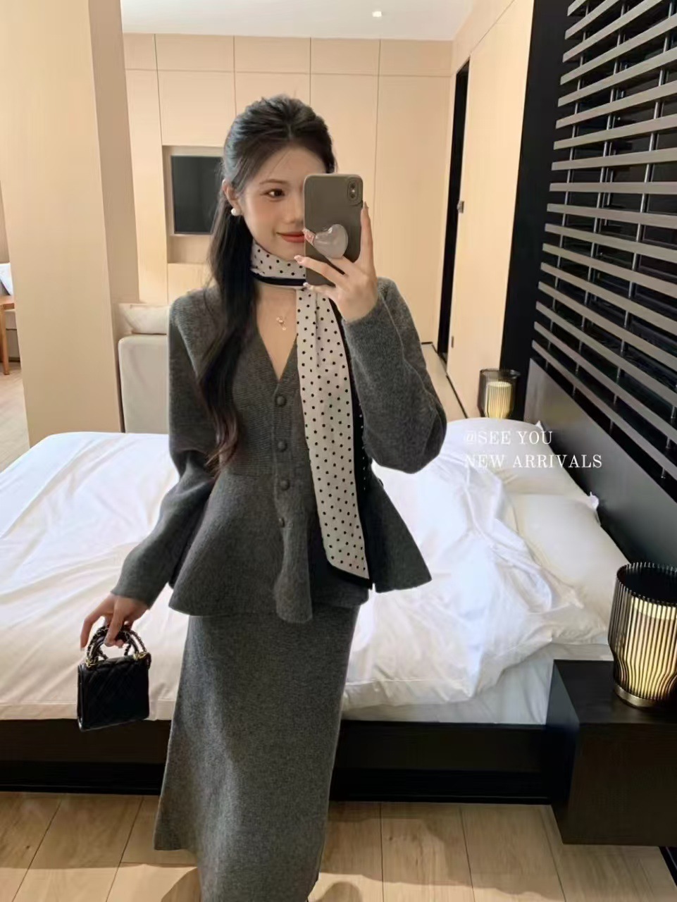 Winter Gentle Wear 여성용 2024 새로운 한국식 타이트 허리 슬리밍 니트 스웨터 올 매치 스커트 투피스 세트