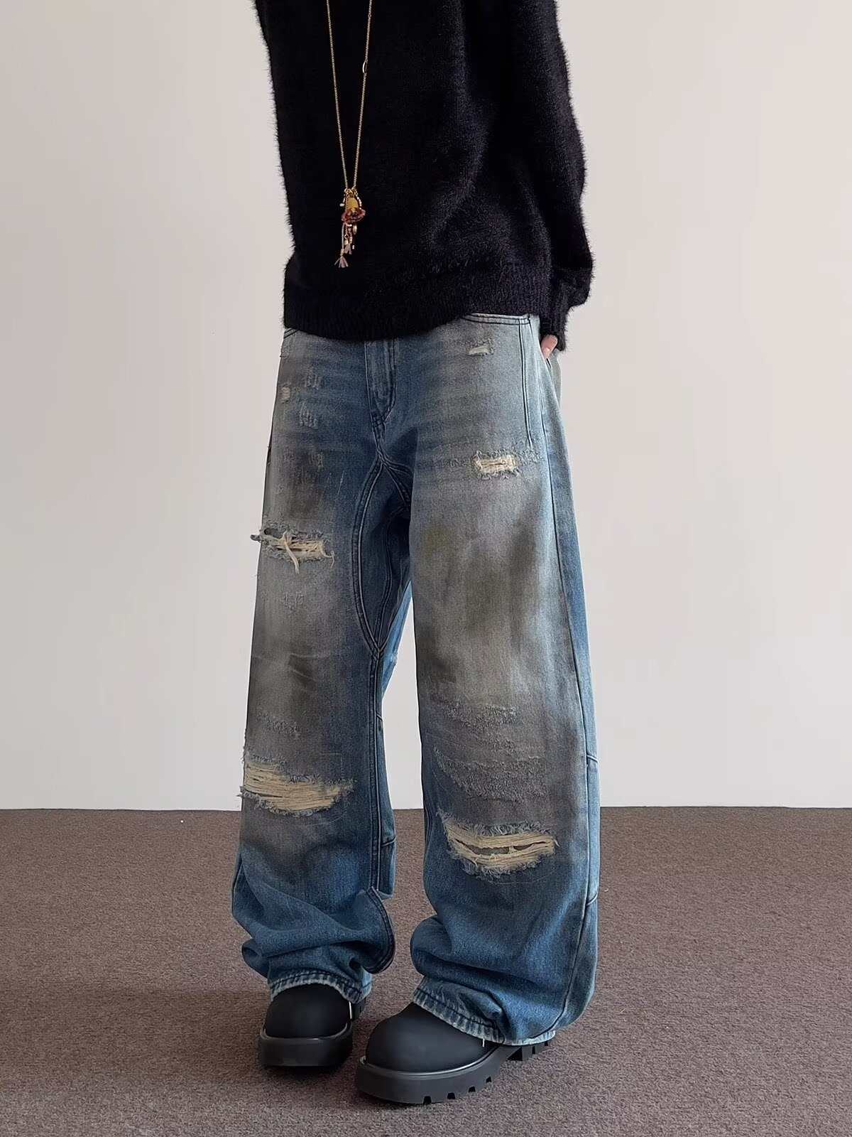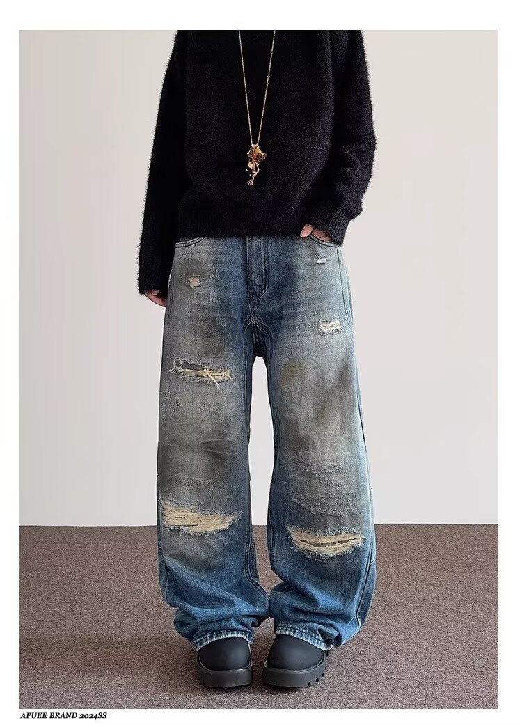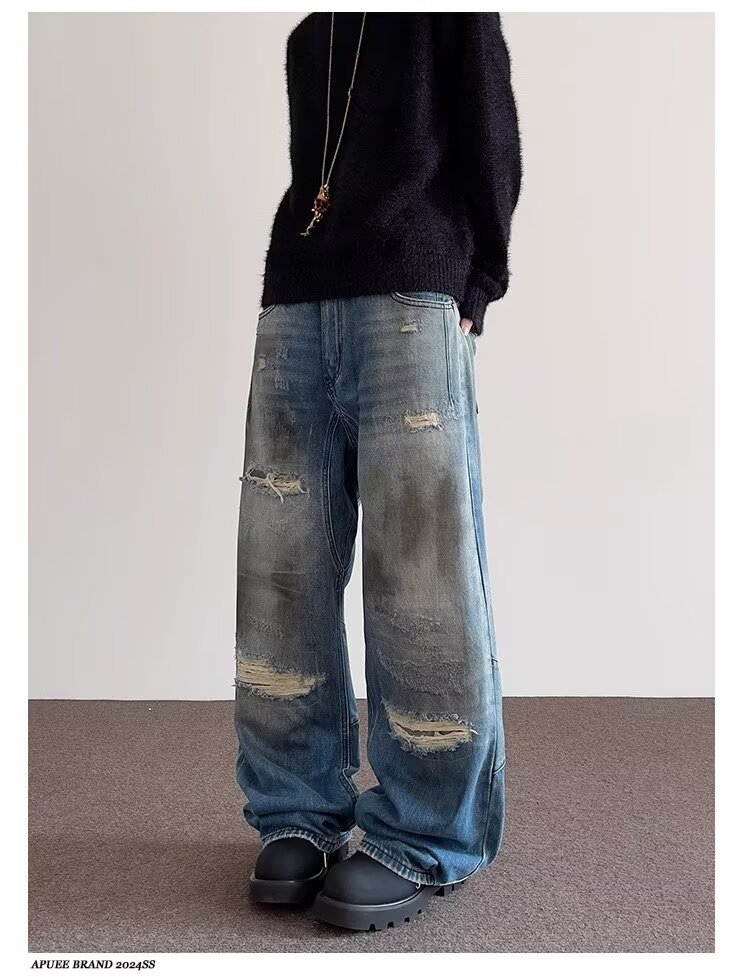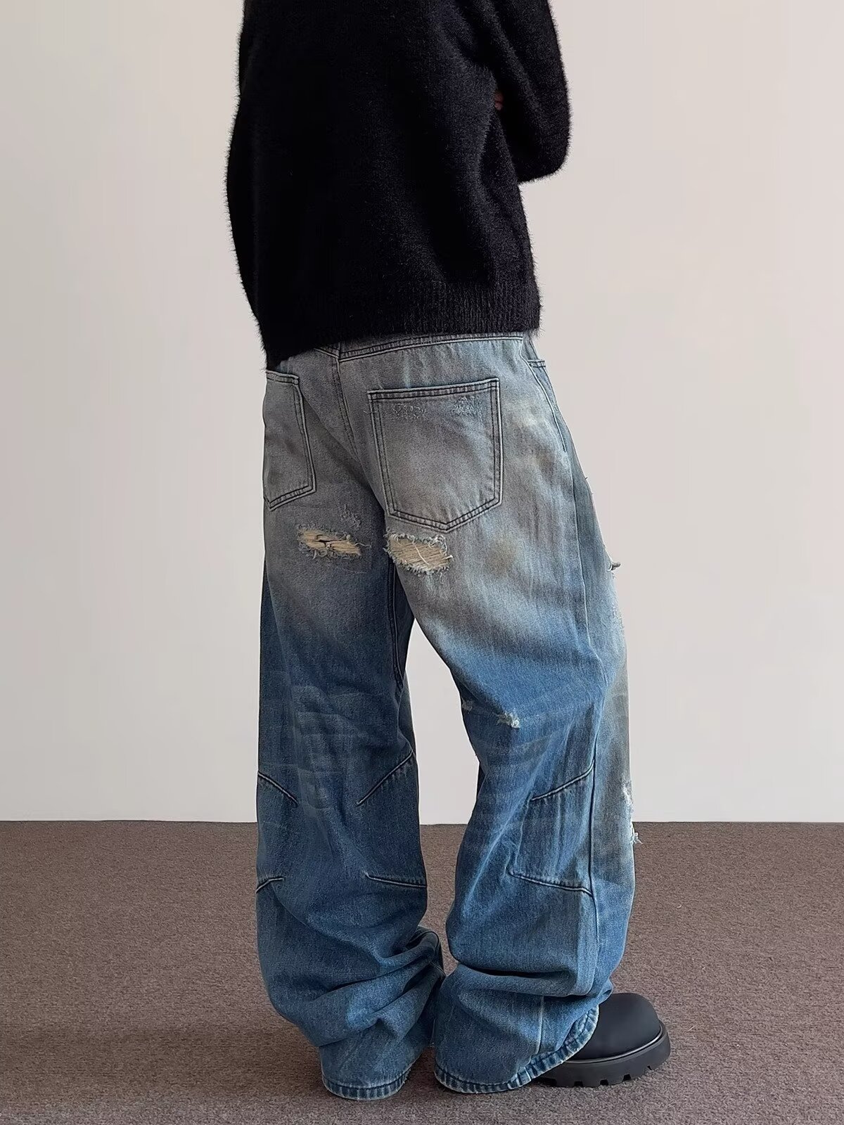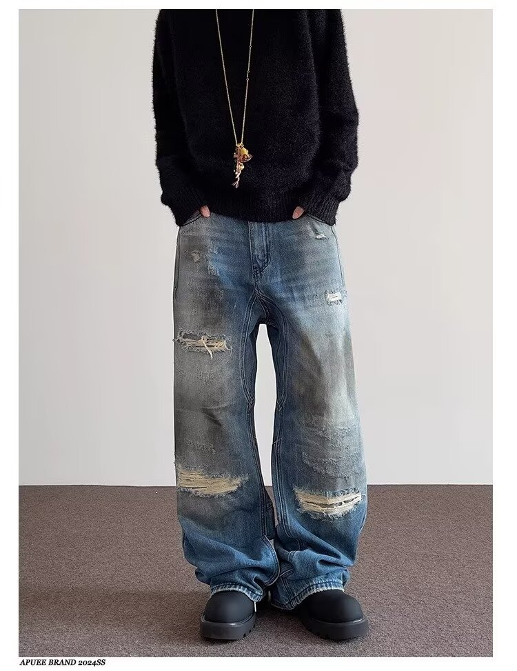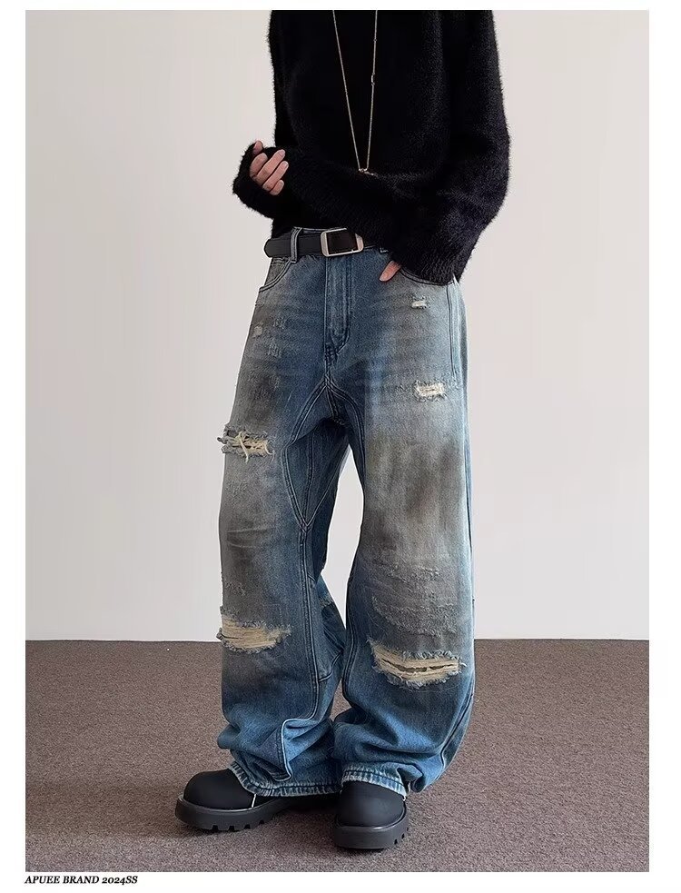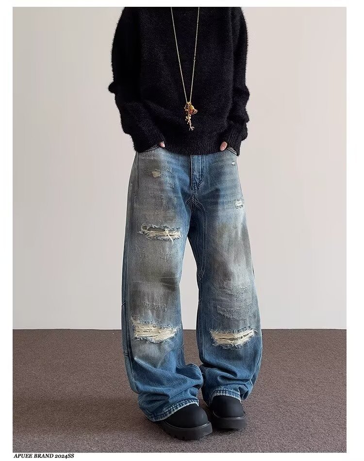 홍콩 스타일 유행 남성 여름 새로운 2025 맞춤형 알파벳 청바지 힙합 패션 트렌디 하이 스트리트 트렌디 한 바지스토어 가기