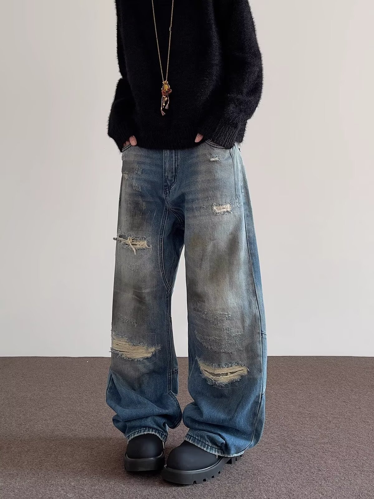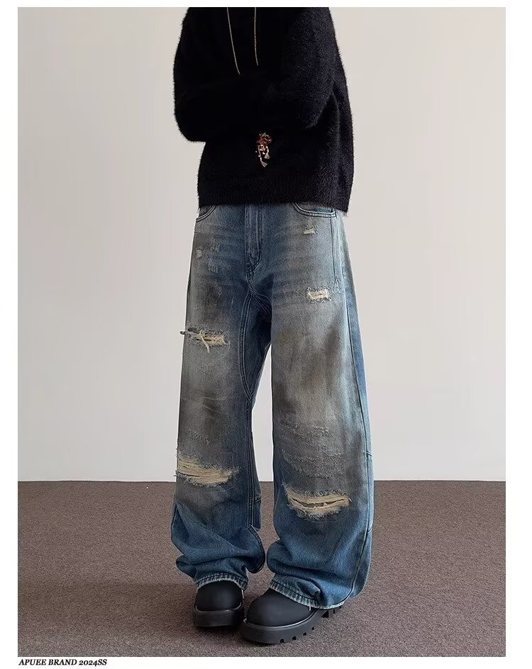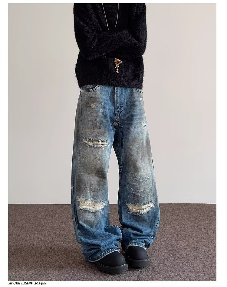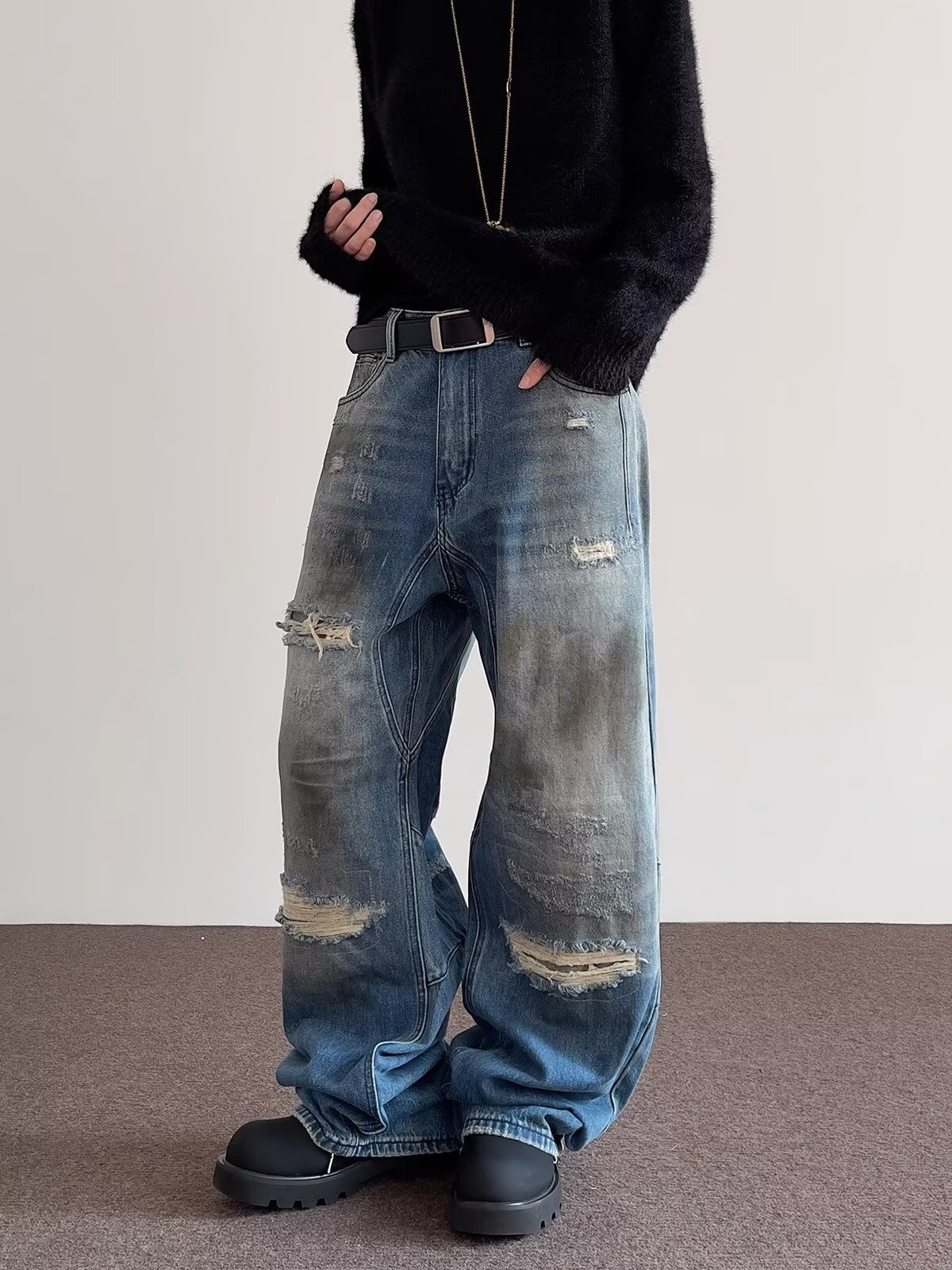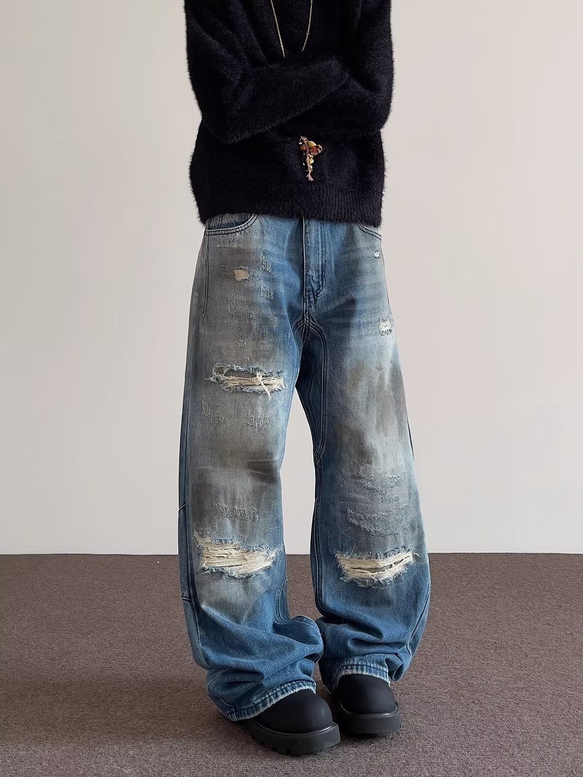 홍콩 스타일 유행 남성 여름 새로운 2025 맞춤형 알파벳 청바지 힙합 패션 트렌디 하이 스트리트 트렌디 한 바지스토어 가기