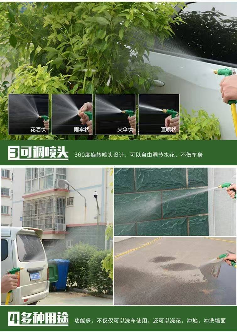 녹색 총 고압 세차 물 총 긴 막대 총 세차 물 총 가정 및 자동차 이중 사용 세차 도구 금속 연장 막대