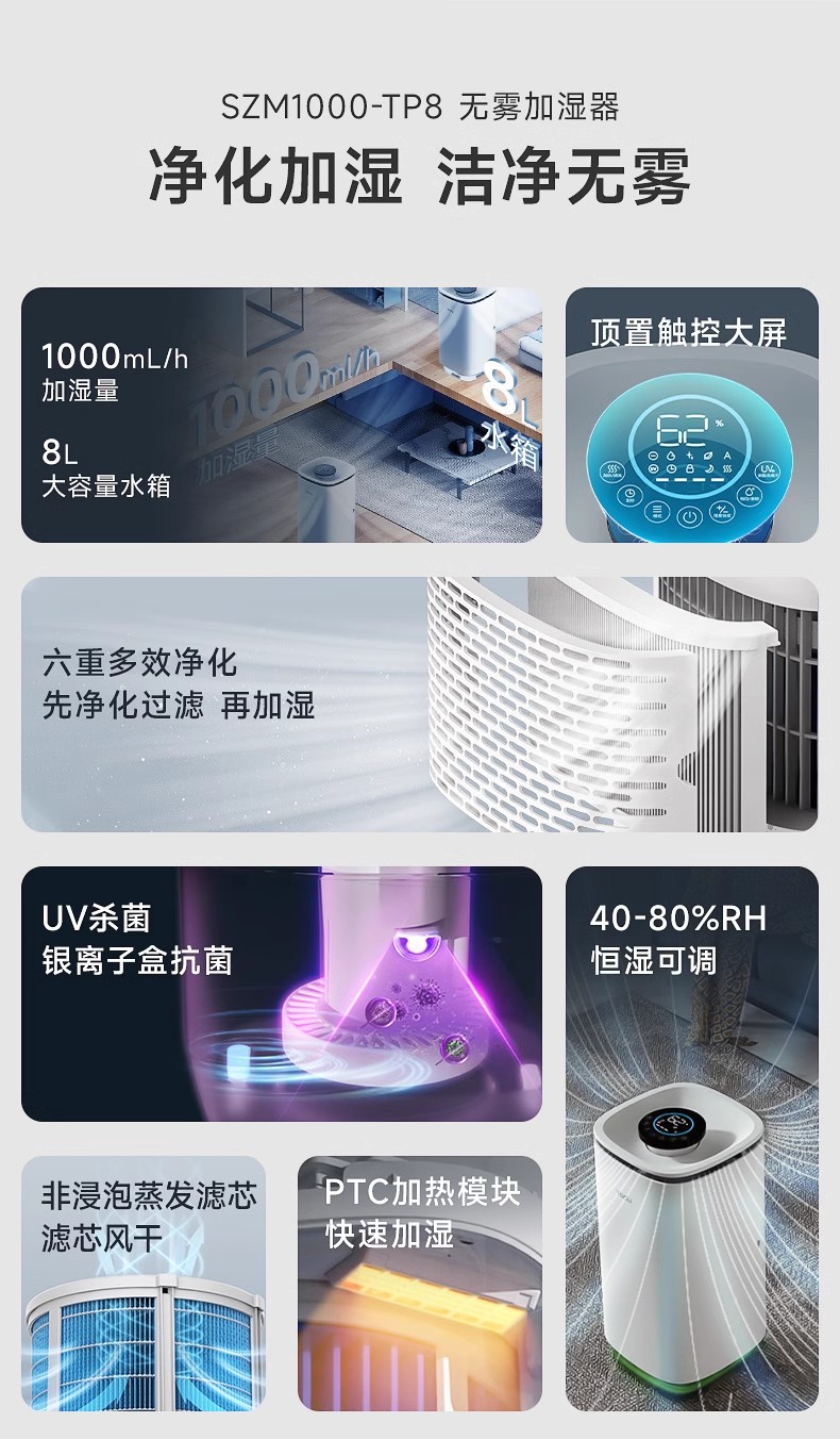 야도 가습기 안개없는 가정용 8L 대용량 지능형 살균 감기 및 고온 증발 가습스토어 가기