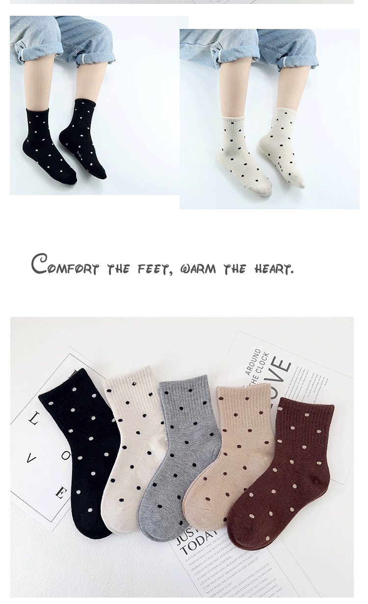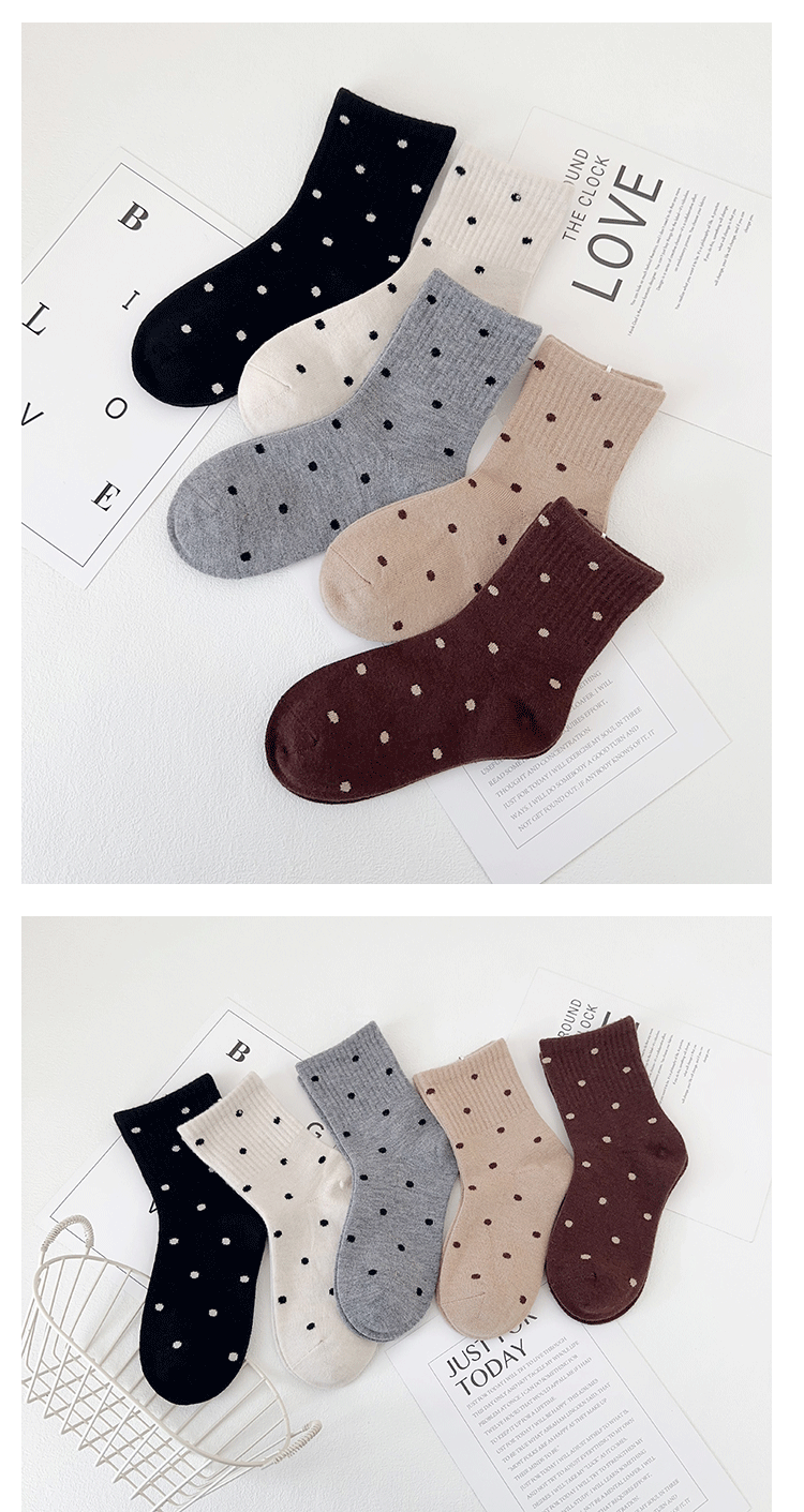 아이 한 쌍의 어린이 양말 겨울 새로운 한국 폴카 도트 중간 튜브 양말 캐시미어 패딩 따뜻한 소녀 따뜻한 벨벳 조수 양말