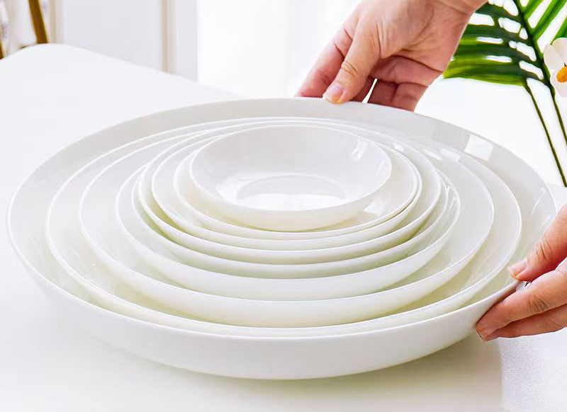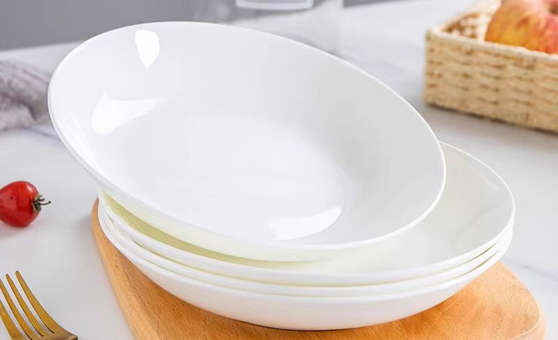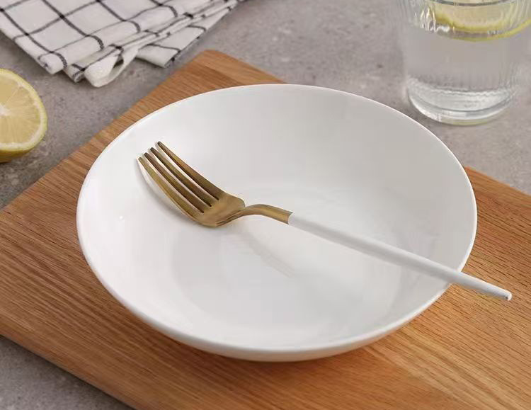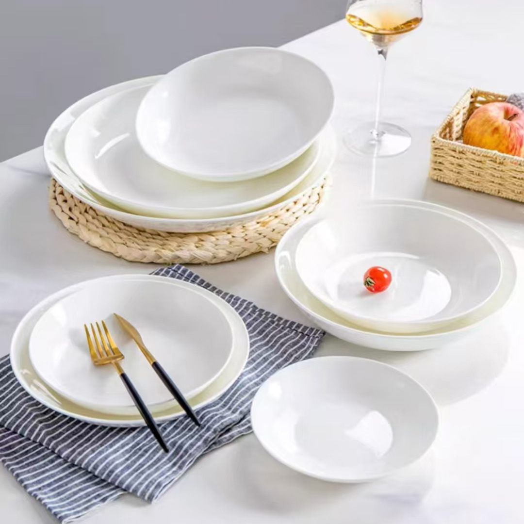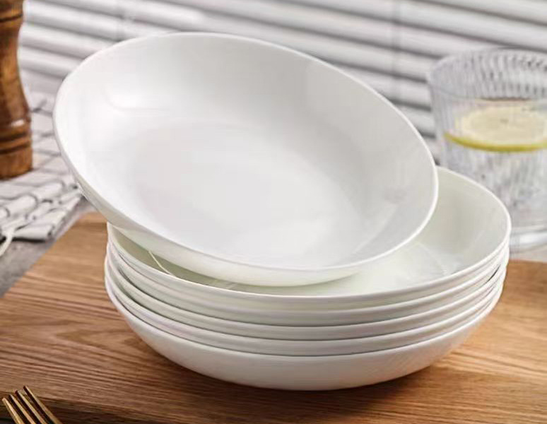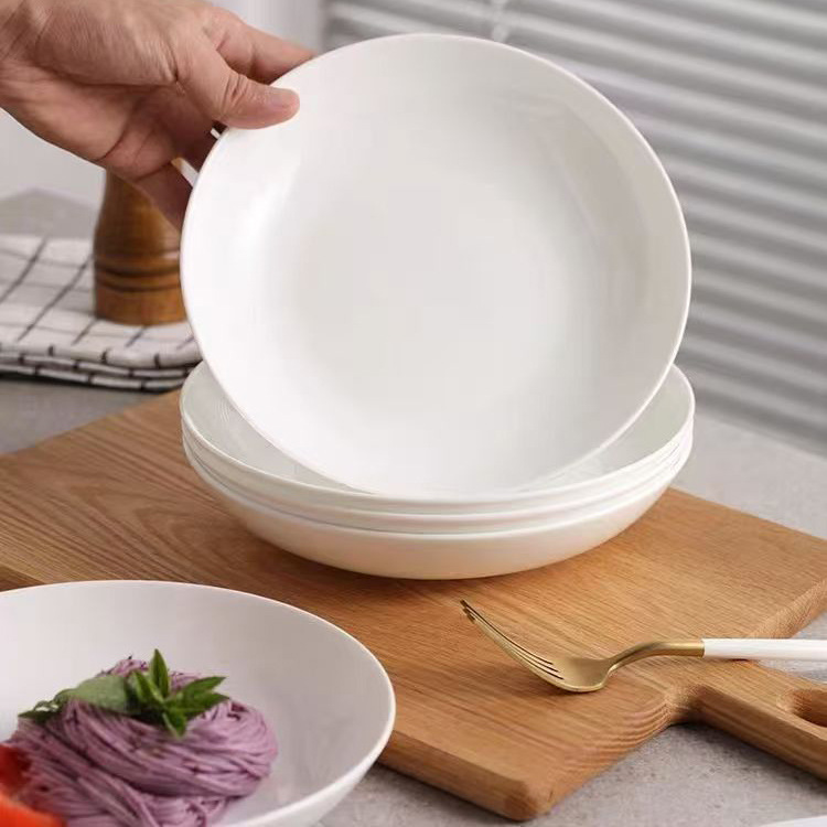 도매 가정용 순백색 세라믹 깊은 접시 파스타 수프 접시 호텔 레스토랑 식기 선물 접시 본차이나 접시