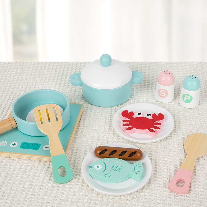 국경 간 어린이 퍼즐 시뮬레이션 유도 밥솥 블루 냄비 세트 남성과 여성의 보물 요리 및 요리 나무 주방 장난감스토어 가기