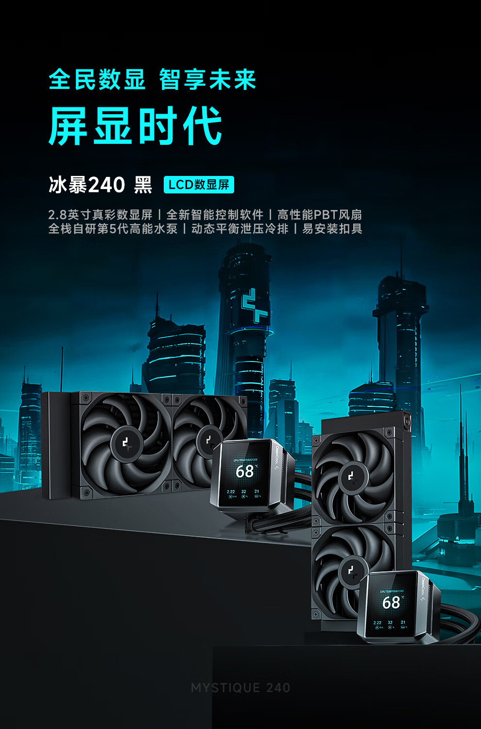 큐슈 펑센 얼음 폭풍 MYSTIQUE240 스크린 디스플레이 사용자 지정 FDB 데스크탑 컴퓨터 통합 물 냉각 라디에이터